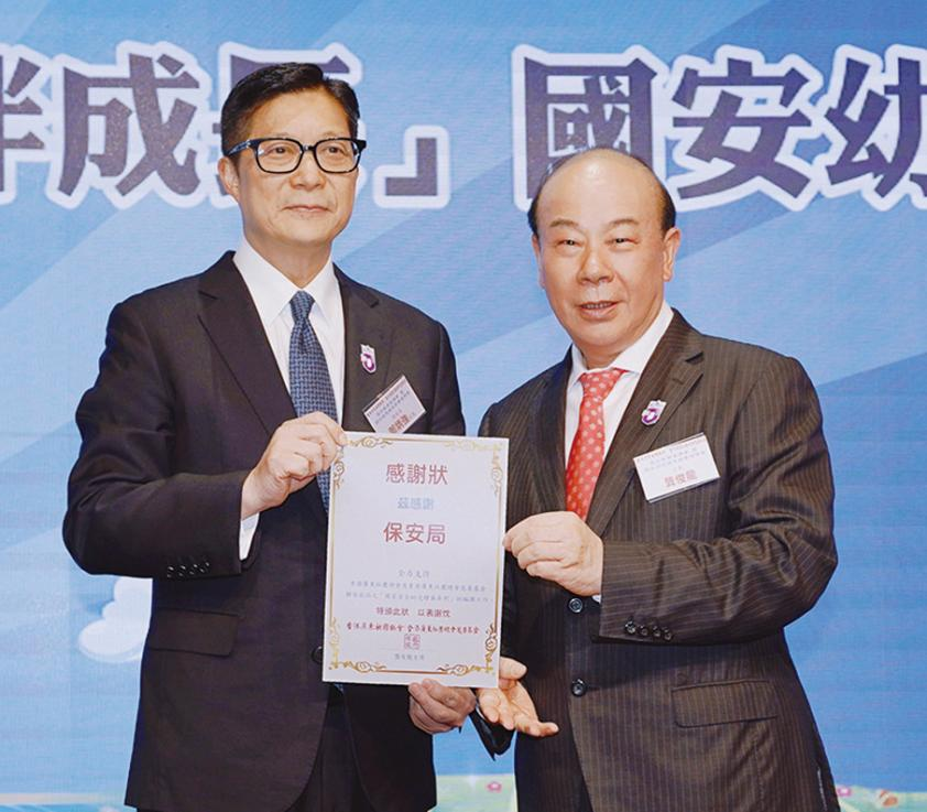 他指出,香港要配合國家實現高質量發展,必須確保高水平安全。當前,香港社會已踏上由治及興新征程,但仍存在軟對抗和外部勢力干預兩大安全風險,要加強維護國家安全,可藉「固、本、培、元」構築底氣:「固」,是鞏固和完善國家安全法律制度和執行機制,特區政府積極完善相關法律法規堵塞漏洞;「本」,是認清國安風險本質,警惕軟對抗迷惑及外部勢力干預陰招;「培」,是持續培養維護國家安全意識,市民發現可疑事物可透過國安處舉報熱線舉報;「元」,是以國家安全教育為元始基礎,警隊全方位在校園推廣國家安全活動。「國家發展巨輪正破浪前行,香港必須緊隨國家發展步伐,主動對接『十五五』規劃,堅持統籌發展和安全,為國家長遠發展培育接班人、生力軍!」