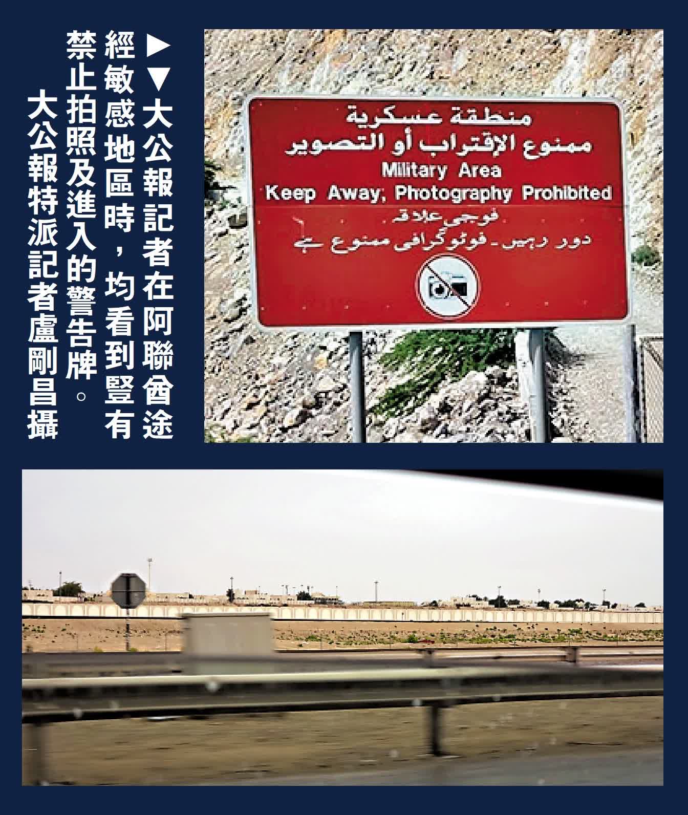 當地對記者採訪管理十分嚴格,大公報記者日前在阿布扎比駕車經過一座寺廟時,突然被兩輛警車及軍車攔截,持槍軍人盤問完畢,還要檢查手機,幸好沒有發現任何可疑之處,加上是中國人,最終得以脫身。