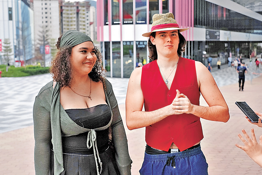 來自西班牙的旅客Lopez昨日特地變裝成動漫海賊王路飛的草帽紅衣小子的造型,表示觀賽後會與家人在九龍城區用膳。他探望在港定居的家人,已在港逗留了兩個月,數周後將離港。香港美食方面,他最喜愛燒賣,直言幾乎每日都會吃,也愛餐蛋麵、菠蘿包等香港特色美食。