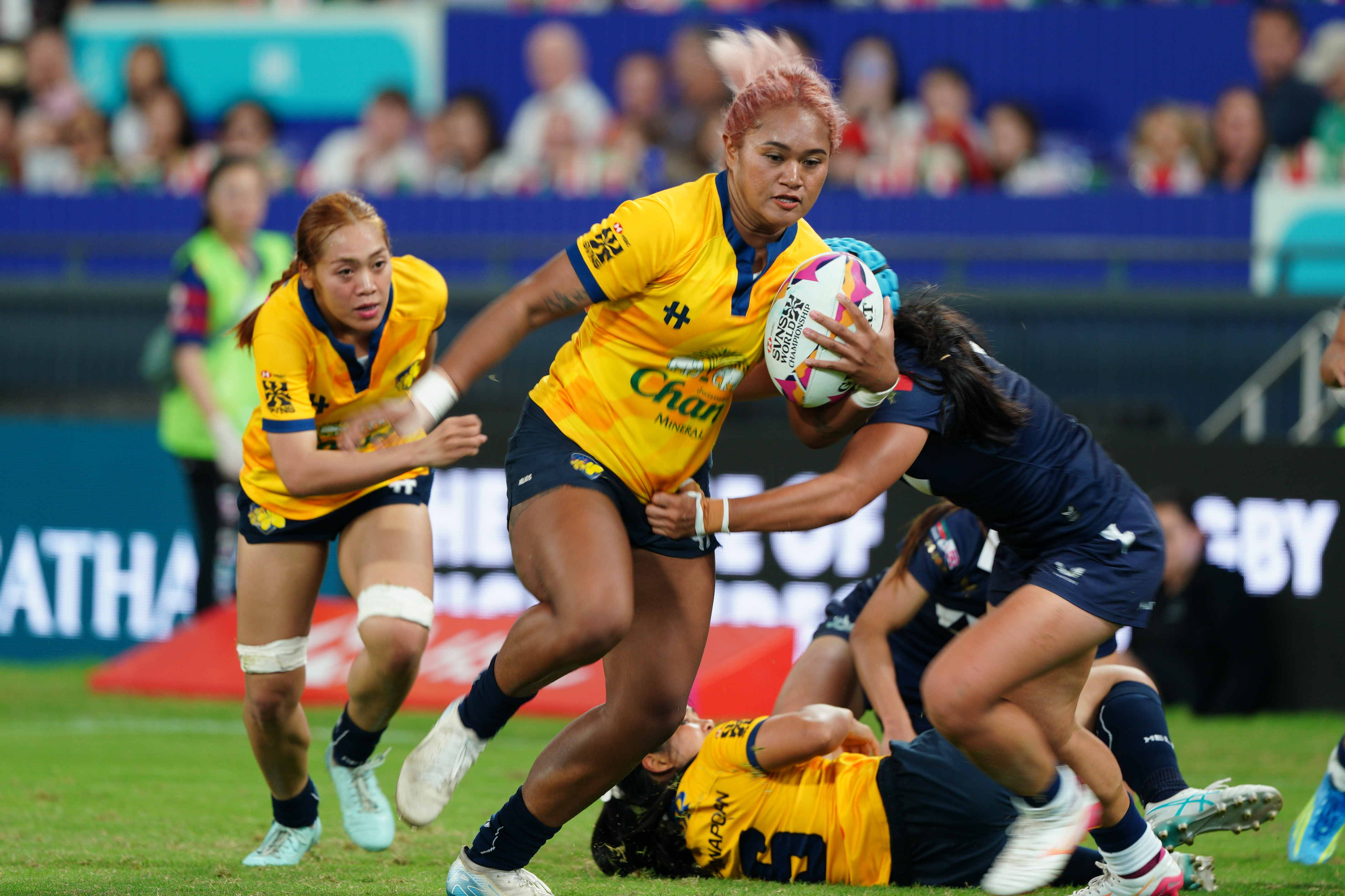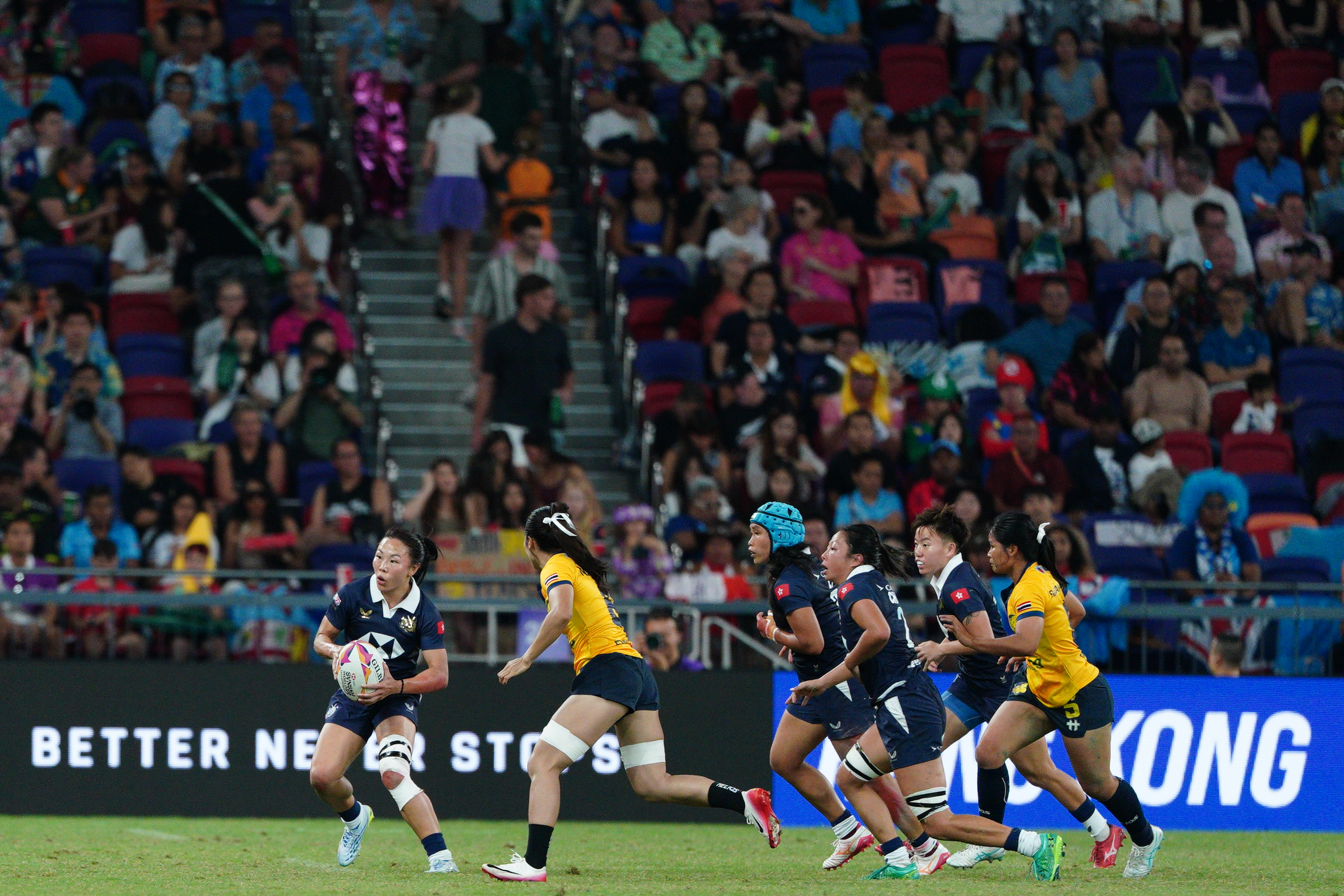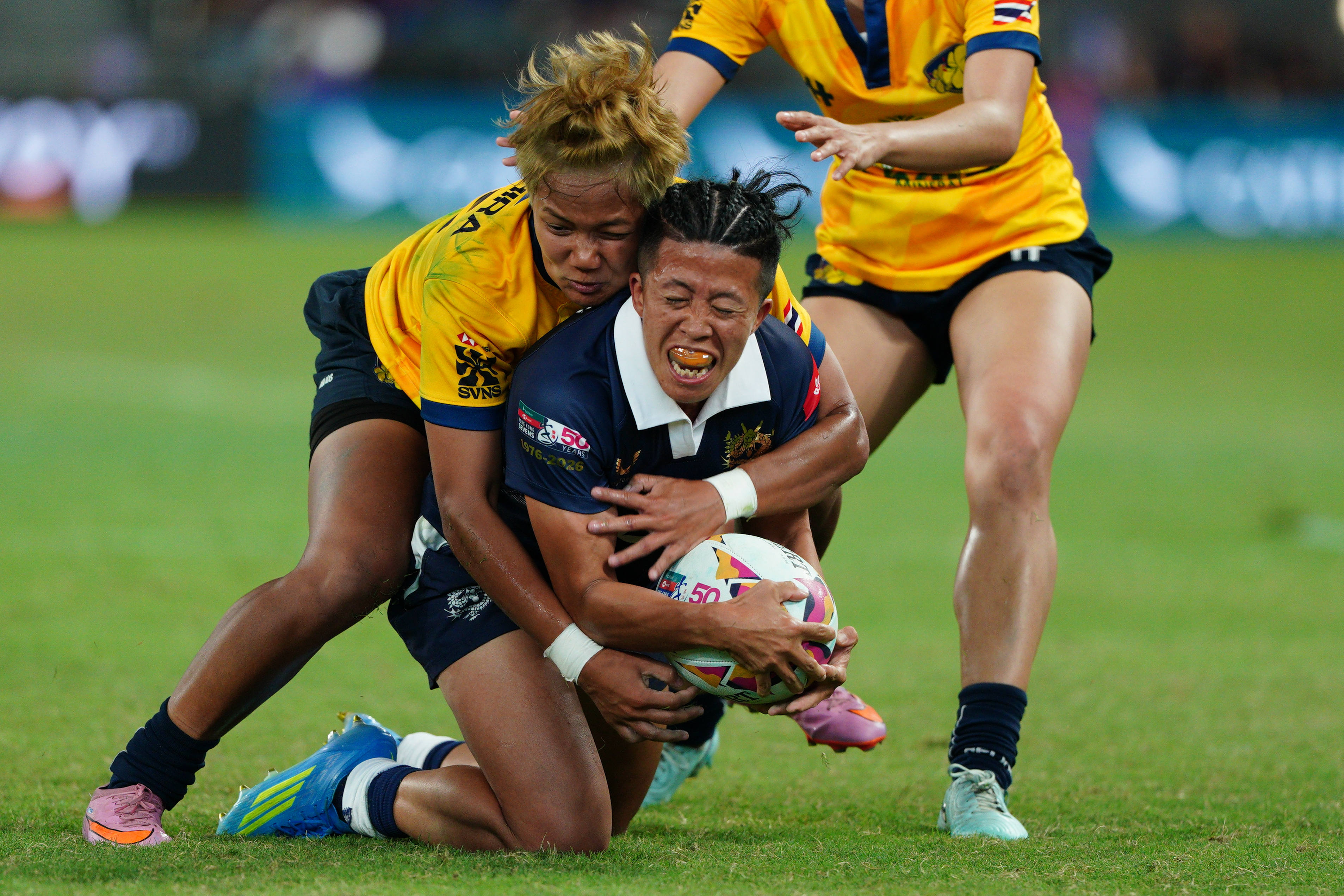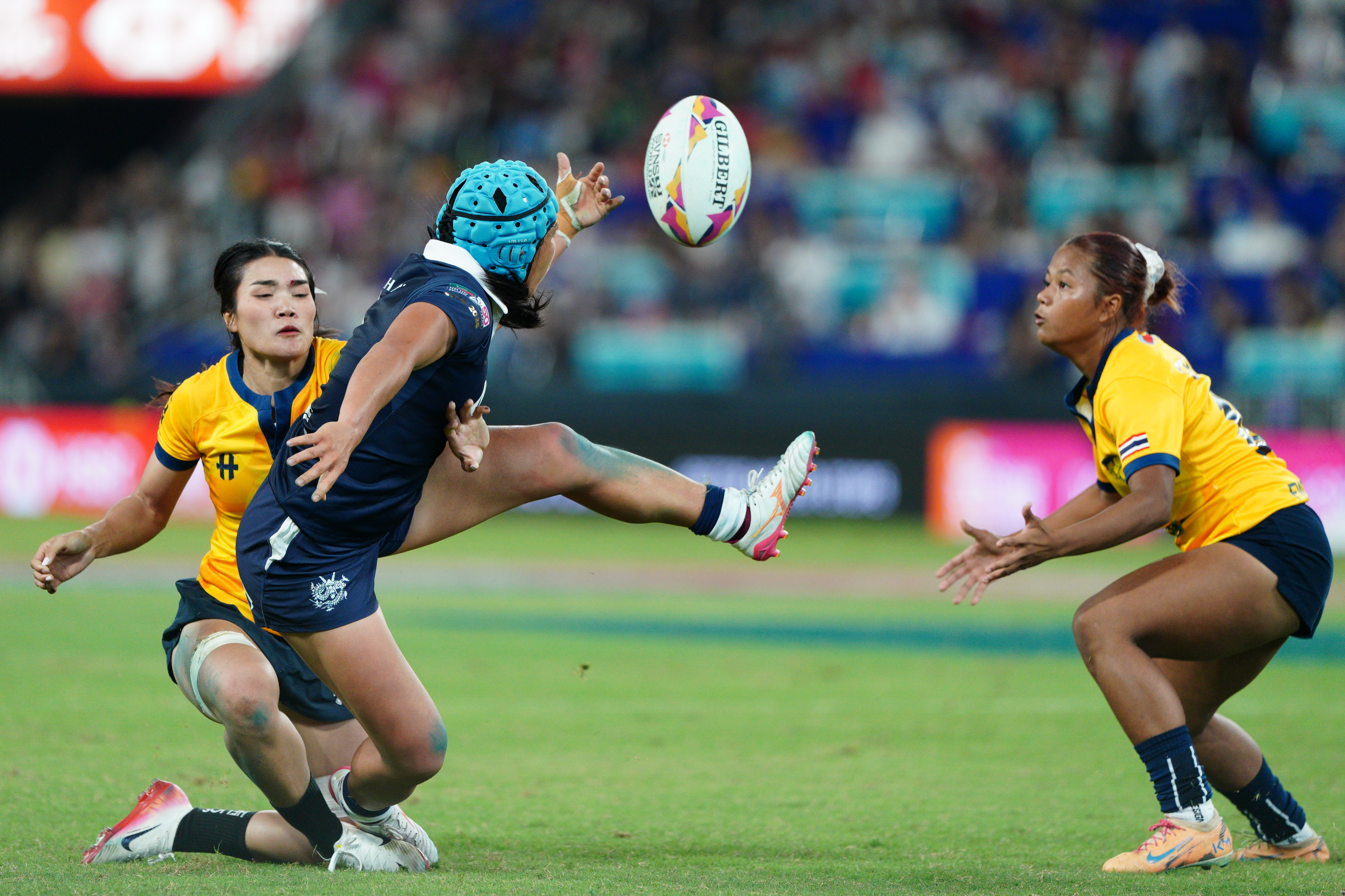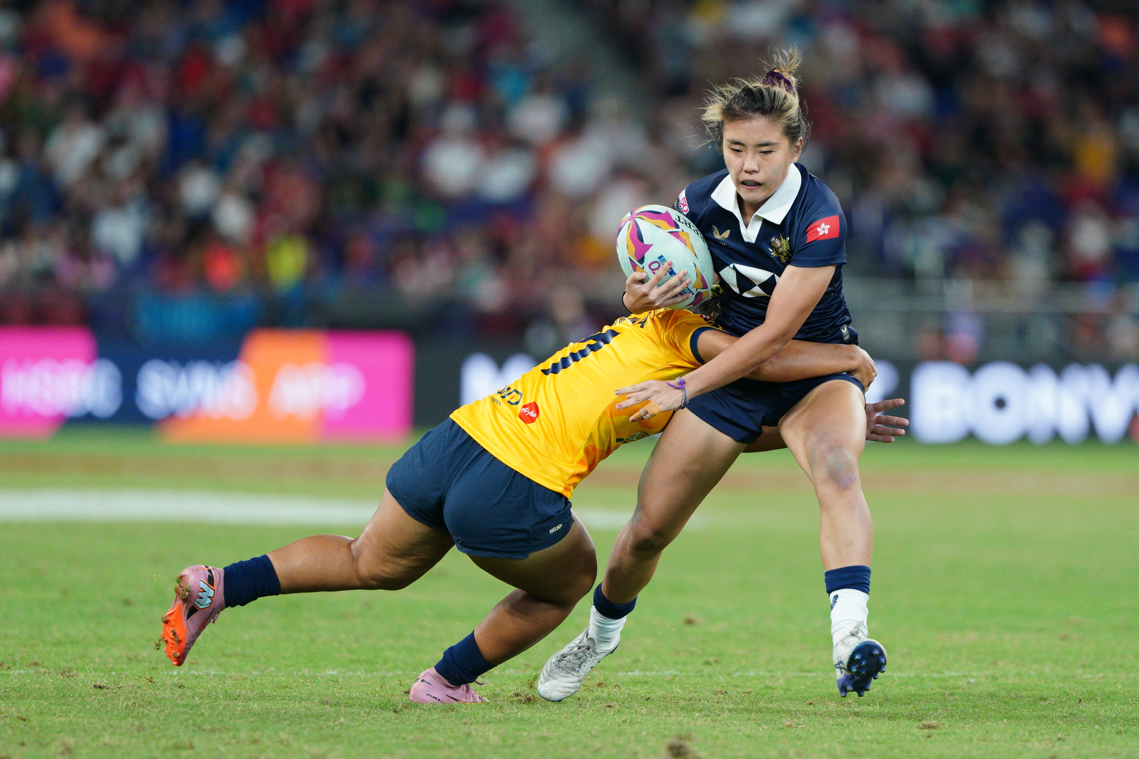 大公文匯全媒體記者現場所見,在剛剛結束的女子欖球賽中,港隊以12比24不敵泰國。上半場,泰國隊早段以5比0領先,其後港隊奮起直追,將比分追至5比7。後半場港隊初段被泰國隊反超,大比分一度來到7比24,港隊苦戰將比分拉至12比24。港隊女子欖球暫時完成了所有賽事。