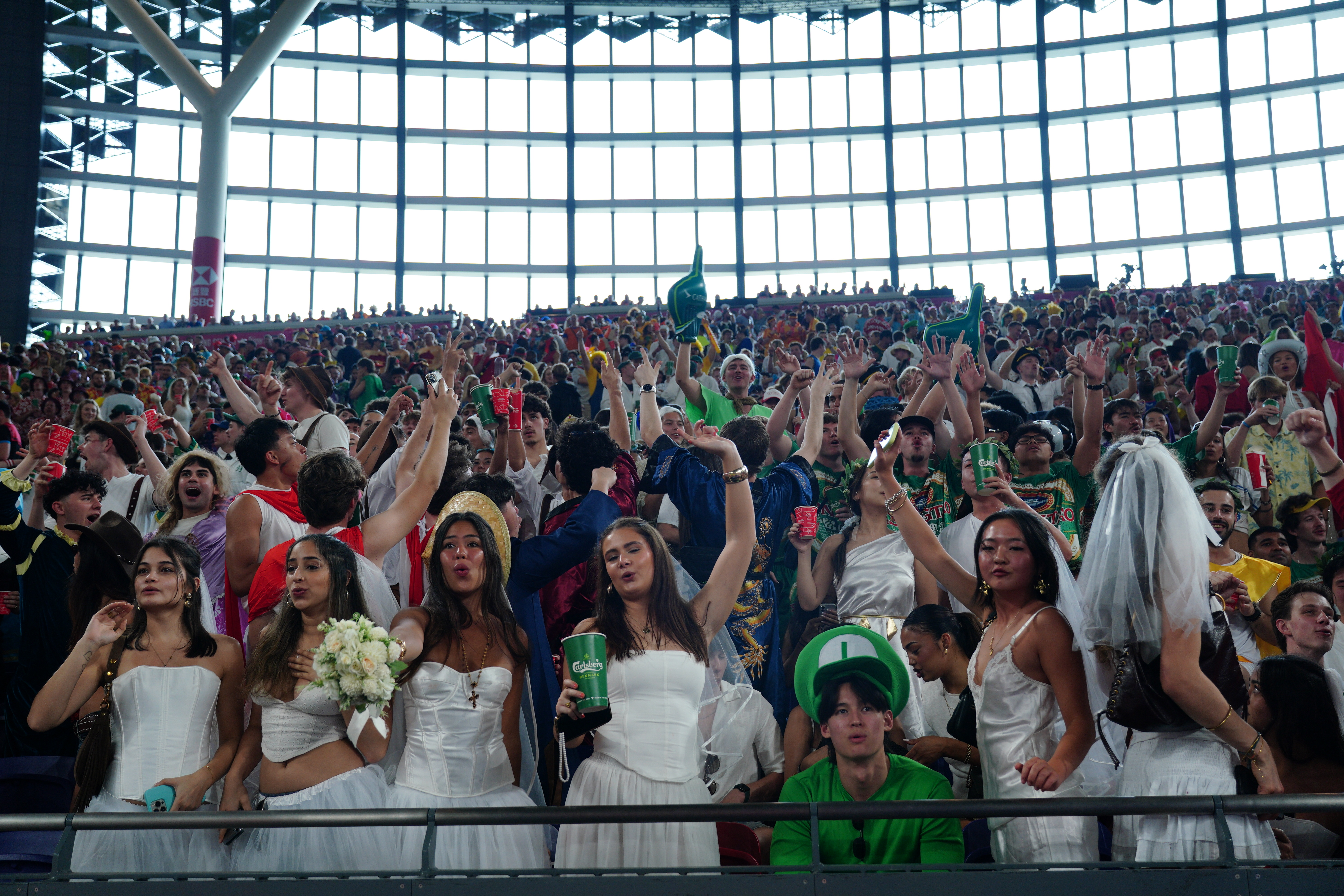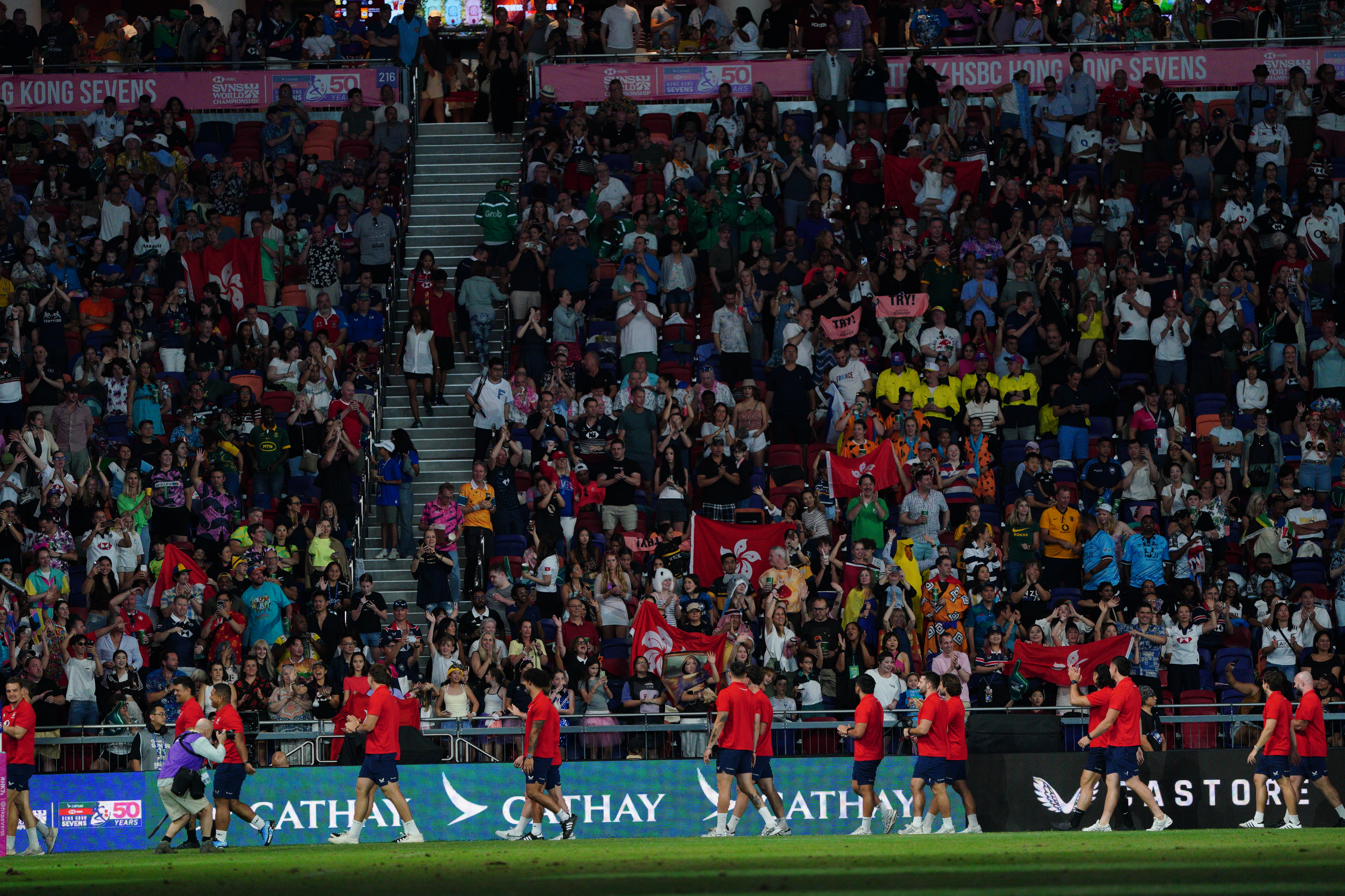 (大公文匯全媒體記者 麥鈞傑)香港國際七人欖球賽今日(18日)繼續在啟德主場館上演。第二個比賽日上演世界系列賽分組賽以及8強,男、女子港隊就出戰銀劍賽,女隊在下午2時12分鬥泰國,男隊在下午3時16分對戰日本。