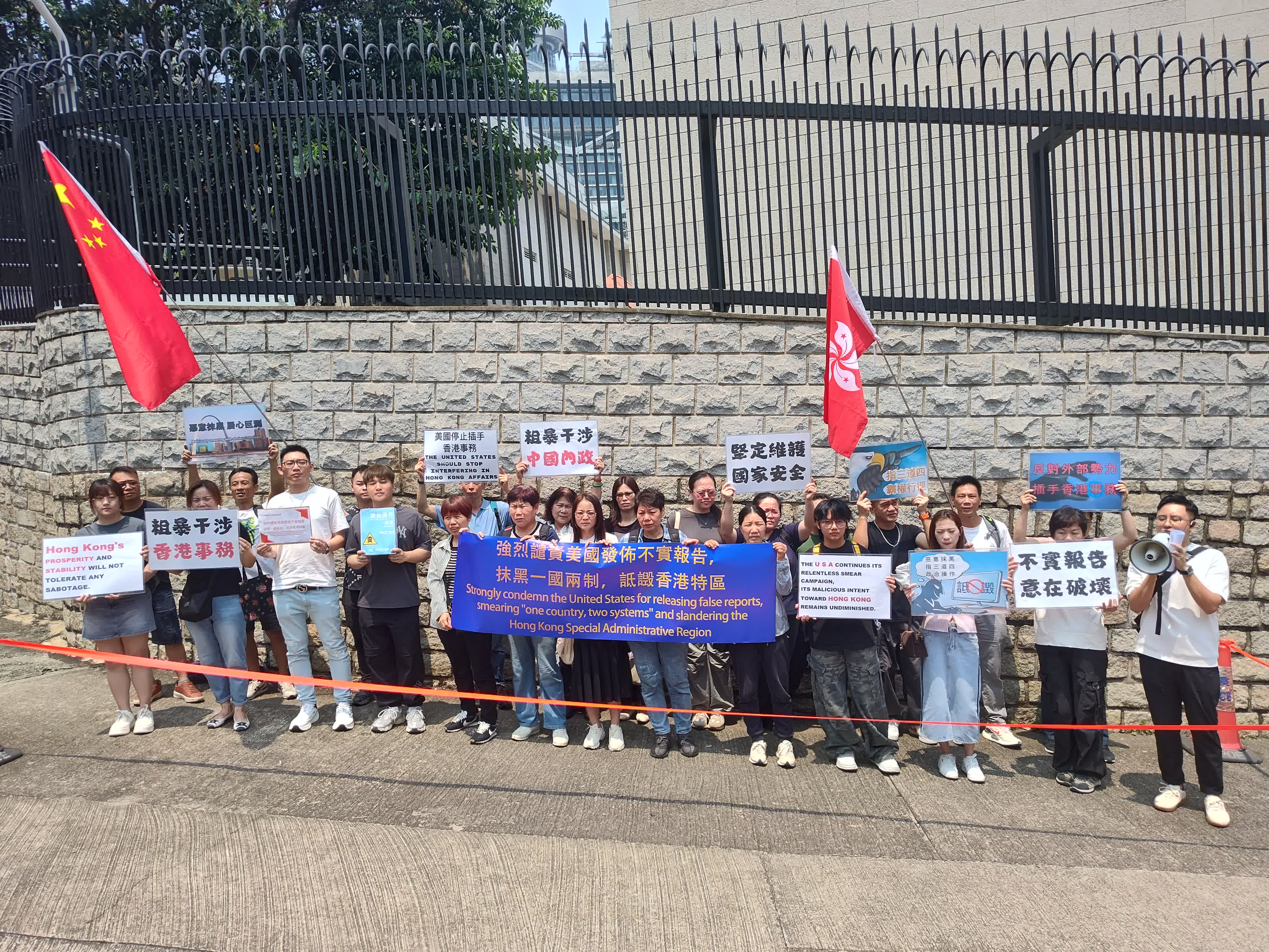 參與抗議的市民表示,香港是中國的香港,香港事務說到底是中國內政。美國一邊打着「民主自由」旗號,一邊用報告、制裁、抹黑來施壓,分明就是政治小丑,雙標無恥。他們強烈譴責美國發布不實報告,並敦促其停止干涉香港事務,不要再把政治利益凌駕於香港市民的福祉之上。