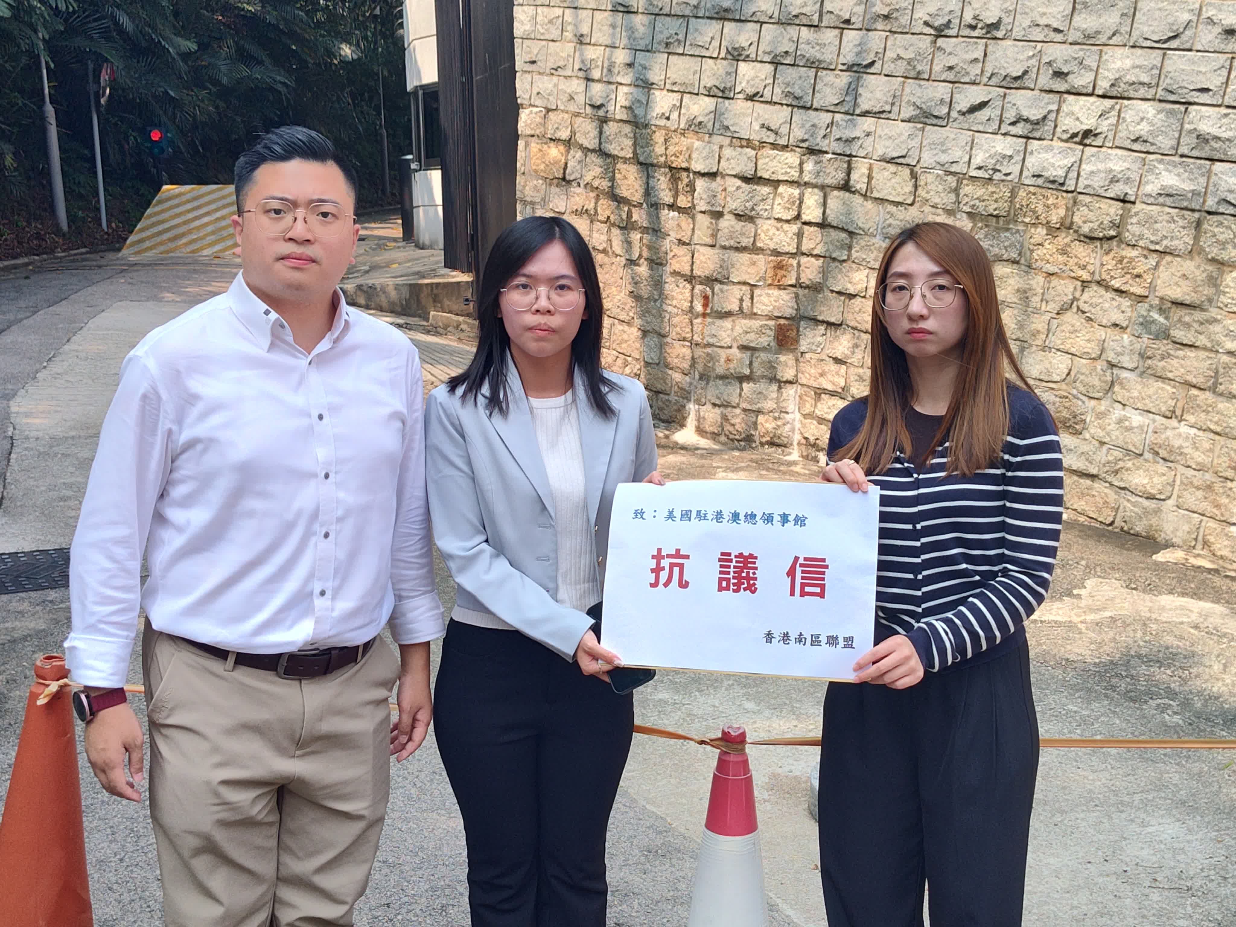 「香港南區聯盟」全力支持外交部駐港公署,敦促美國認清事實,恪守國際法及國際關係基本準則,立即停止以任何方式干預香港事務及中國內政。