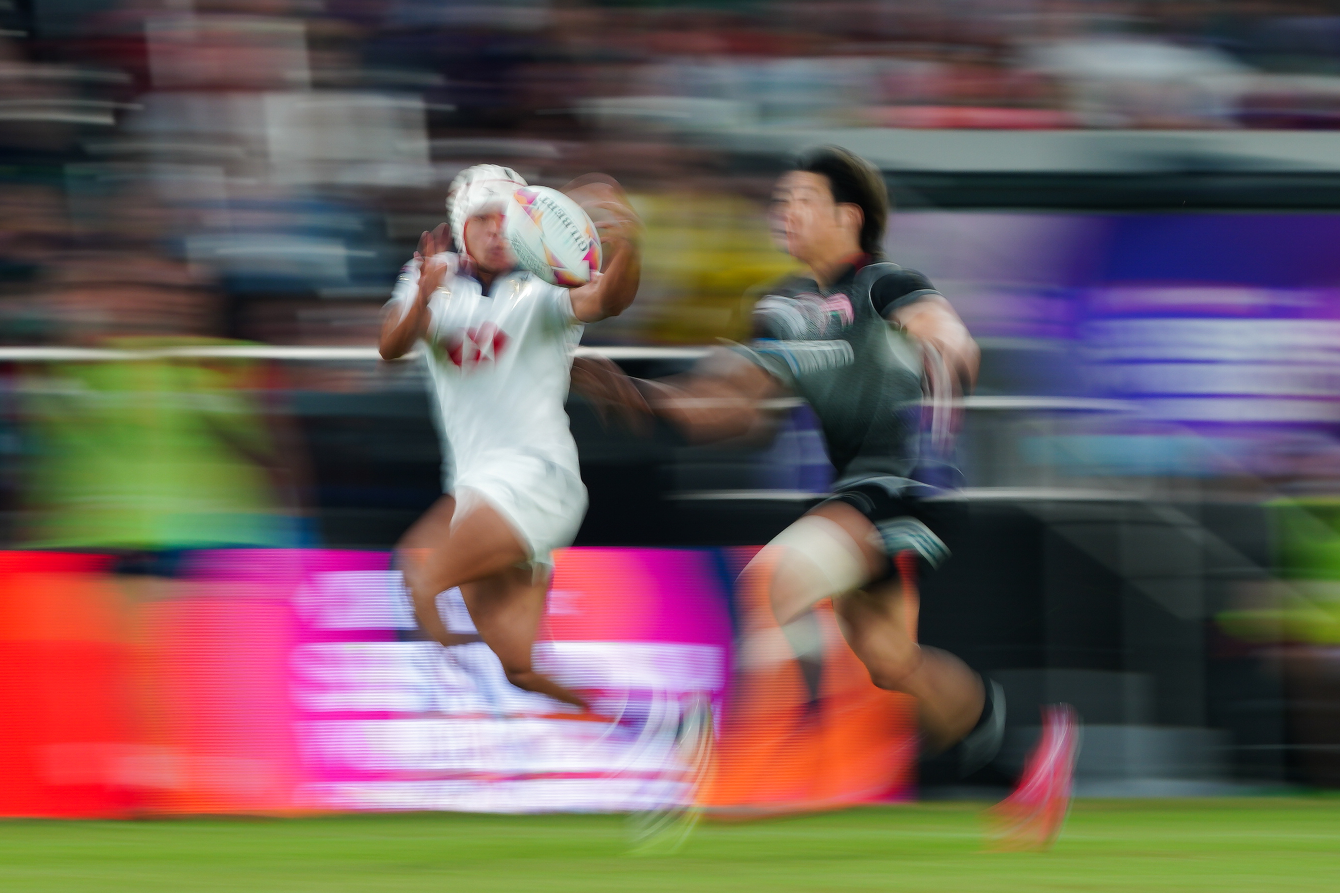 (大公文匯全媒體記者 麥鈞傑 報道)香港國際七人欖球賽今日(18日)繼續在啟德主場館上演。第二個比賽日上演世界系列賽分組賽以及8強,男子港隊下午銀劍賽硬撼日本,以總比分7比14落敗。