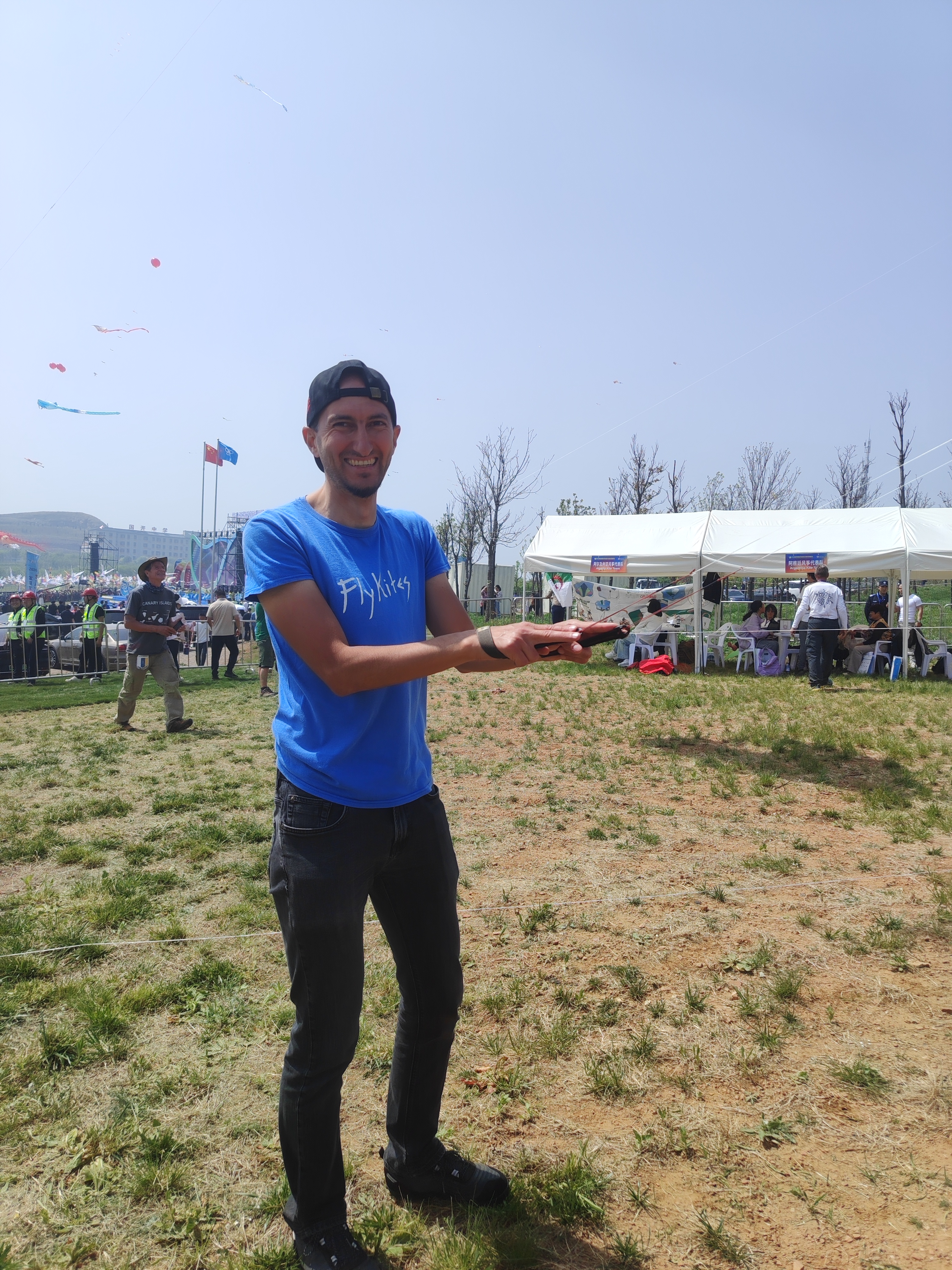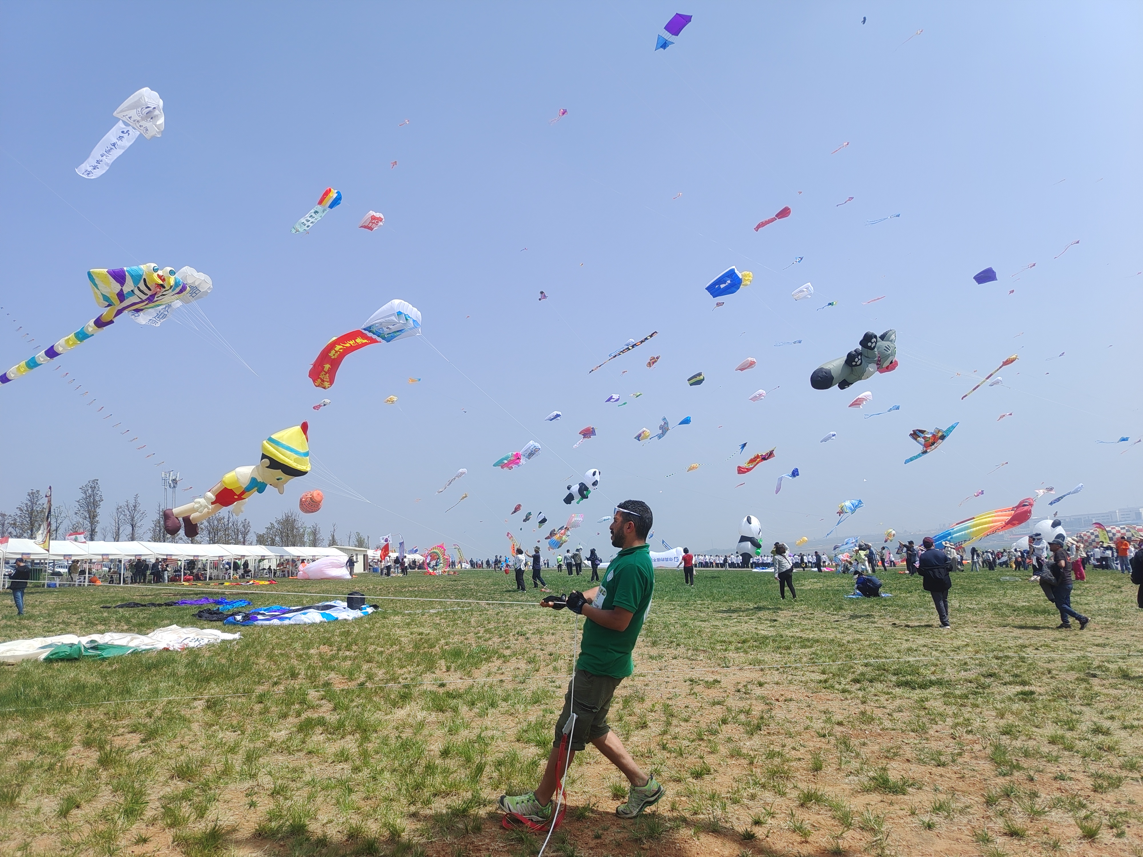 來自希臘的風箏愛好者Konstantin Ratsos已是第四次來到濰坊。此前他參加世界各類風箏大賽,拿到過10枚獎牌。這次放飛的是雙線特技風箏,可自如完成轉彎、懸停、降落、再起飛等動作。「這是一項真正的運動,需要大量練習才能成為好『飛行員』。」他告訴記者,放風箏是為了團結與和平,是共享天空的盛大慶典,「我們想激勵更多人拿起風箏線,到戶外享受樂趣」。