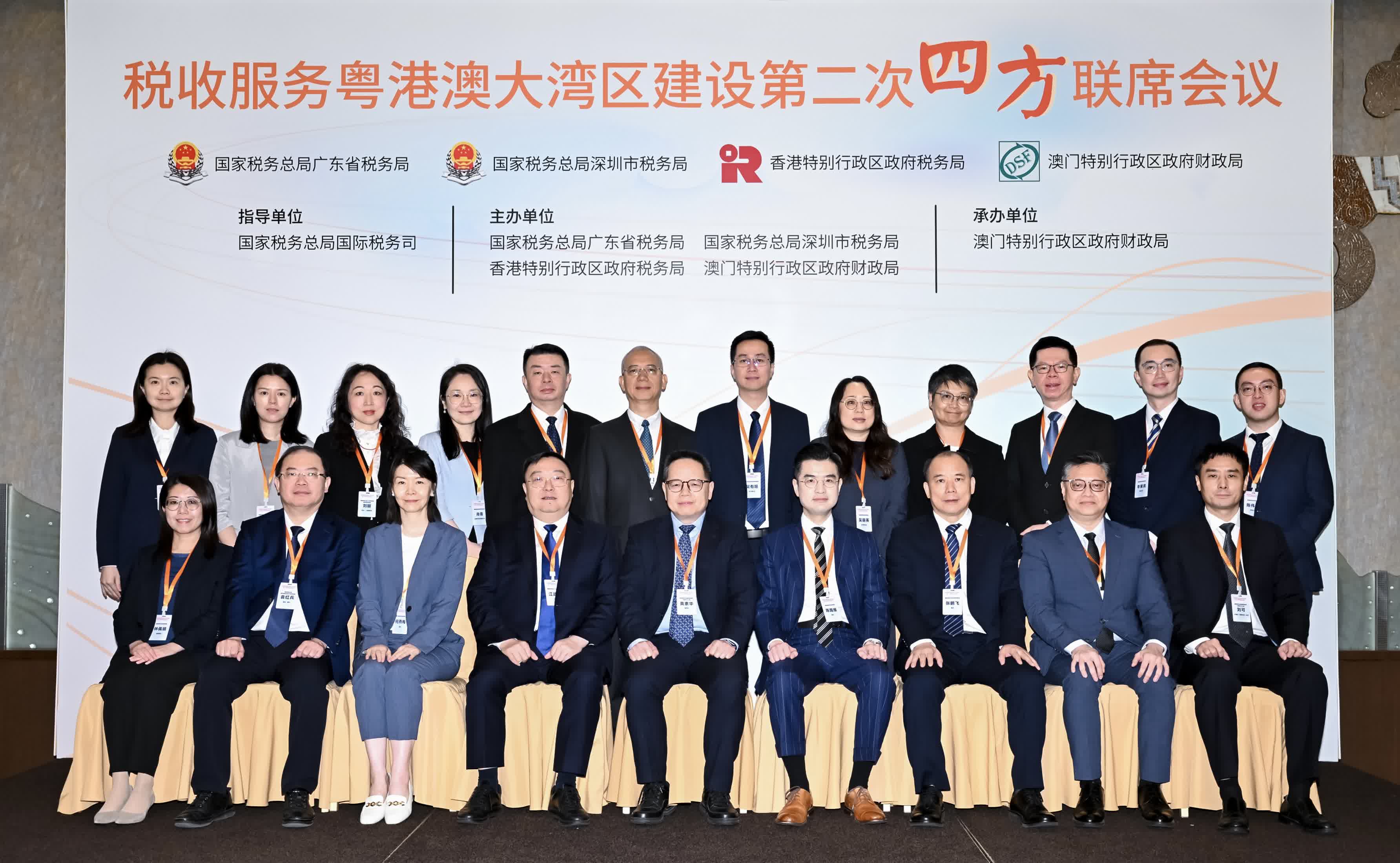 稅收服務粵港澳大灣區建設第二次四方聯席會議4月17日在澳門特別行政區召開,會議旨在落實國家稅務總局廣東省稅務局、國家稅務總局深圳市稅務局、香港特別行政區政府稅務局、澳門特別行政區政府財政局(下稱「四方」)於2024年9月24日在香港特別行政區簽署的《稅收服務粵港澳大灣區建設四方合作備忘錄》各項目標,深化及拓展稅務合作範圍,推動區域高質量發展。
