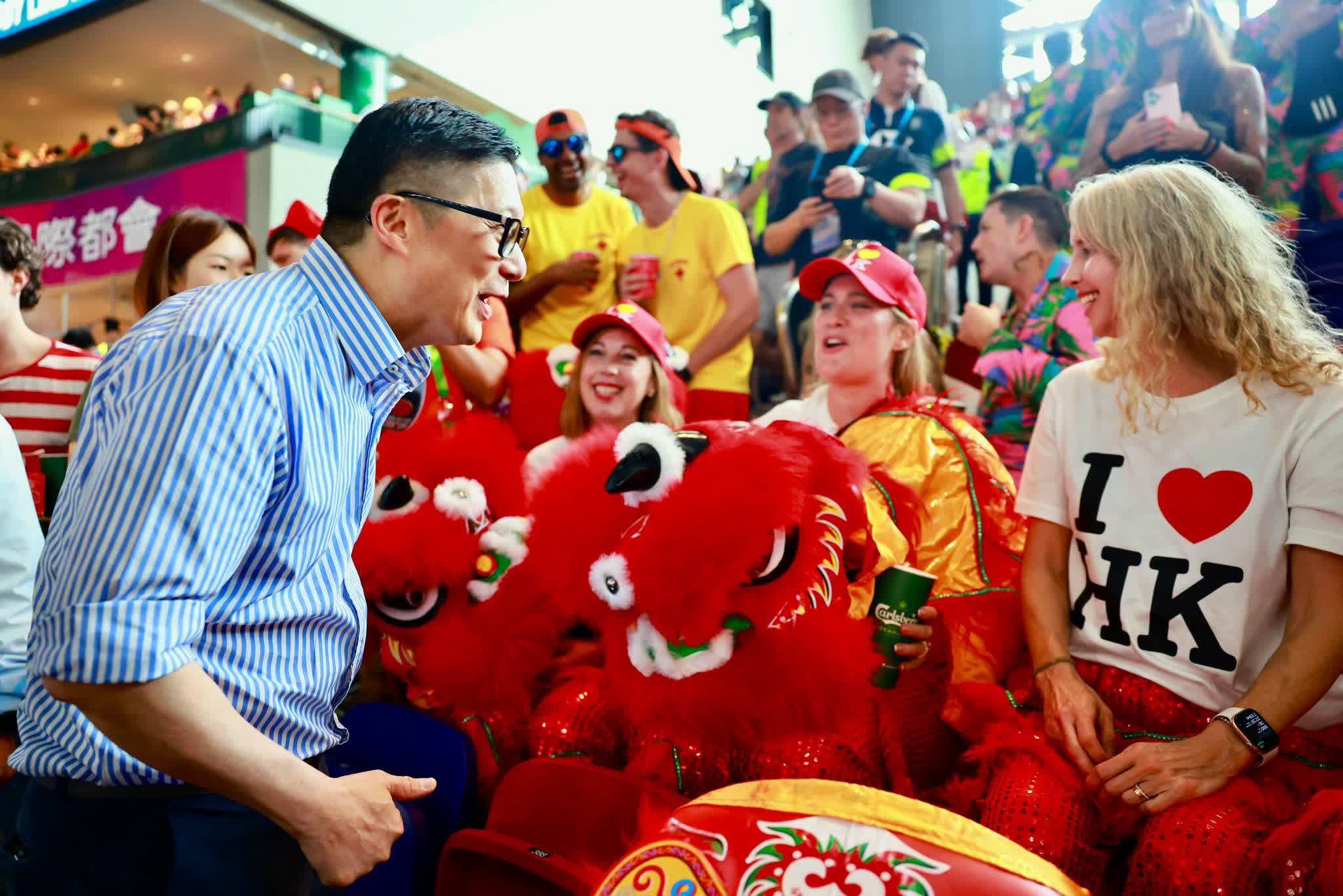 鄧炳強續指,視察時現場剛好上演香港女子隊對泰國隊的銀劍賽,球迷來自四方八面,無論本地或外國球迷都為港隊打氣,氣氛非常澎湃。直言看見大家如此熱烈投入,完全感受到香港作為國際城市的活力同魅力。