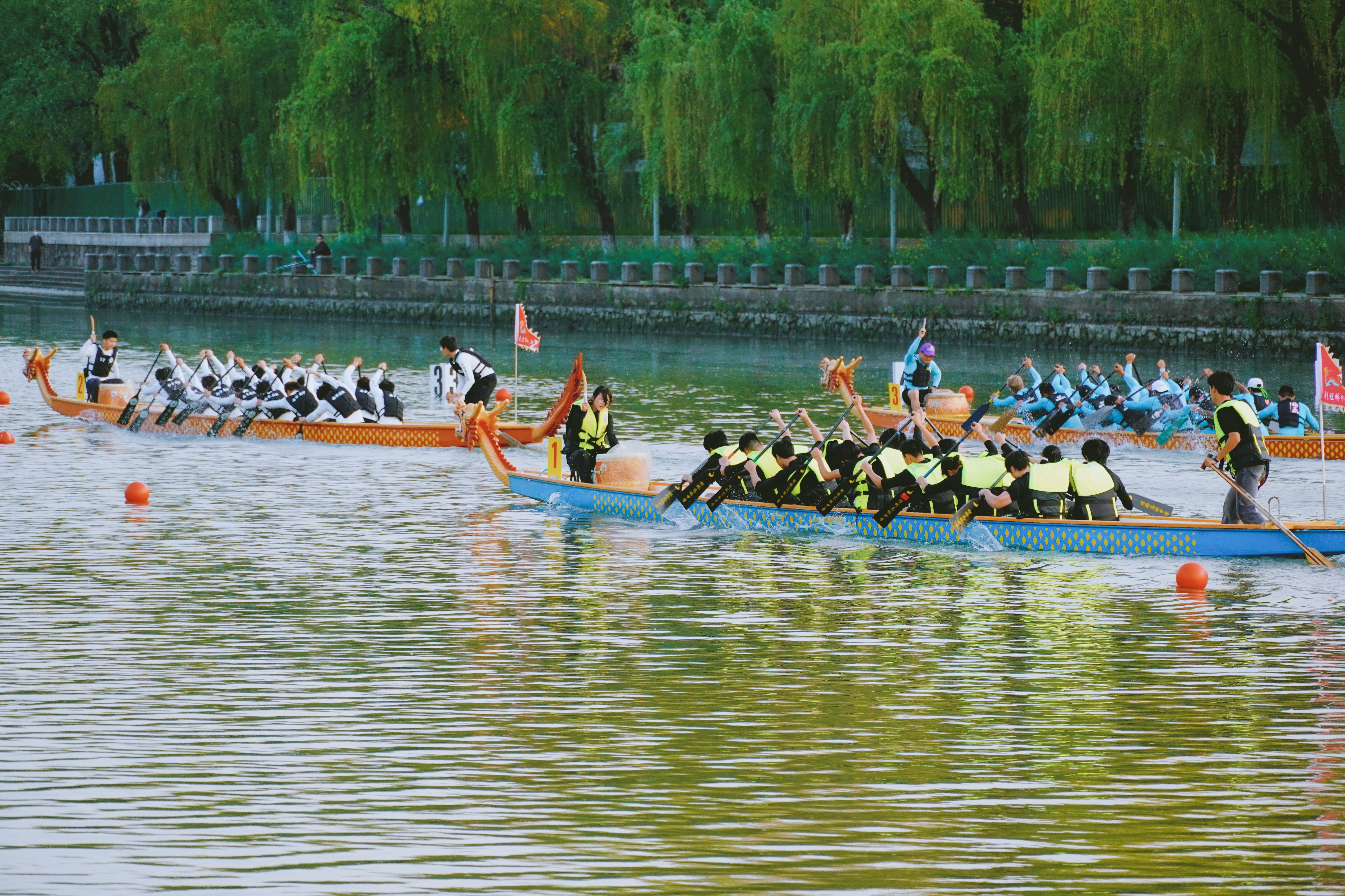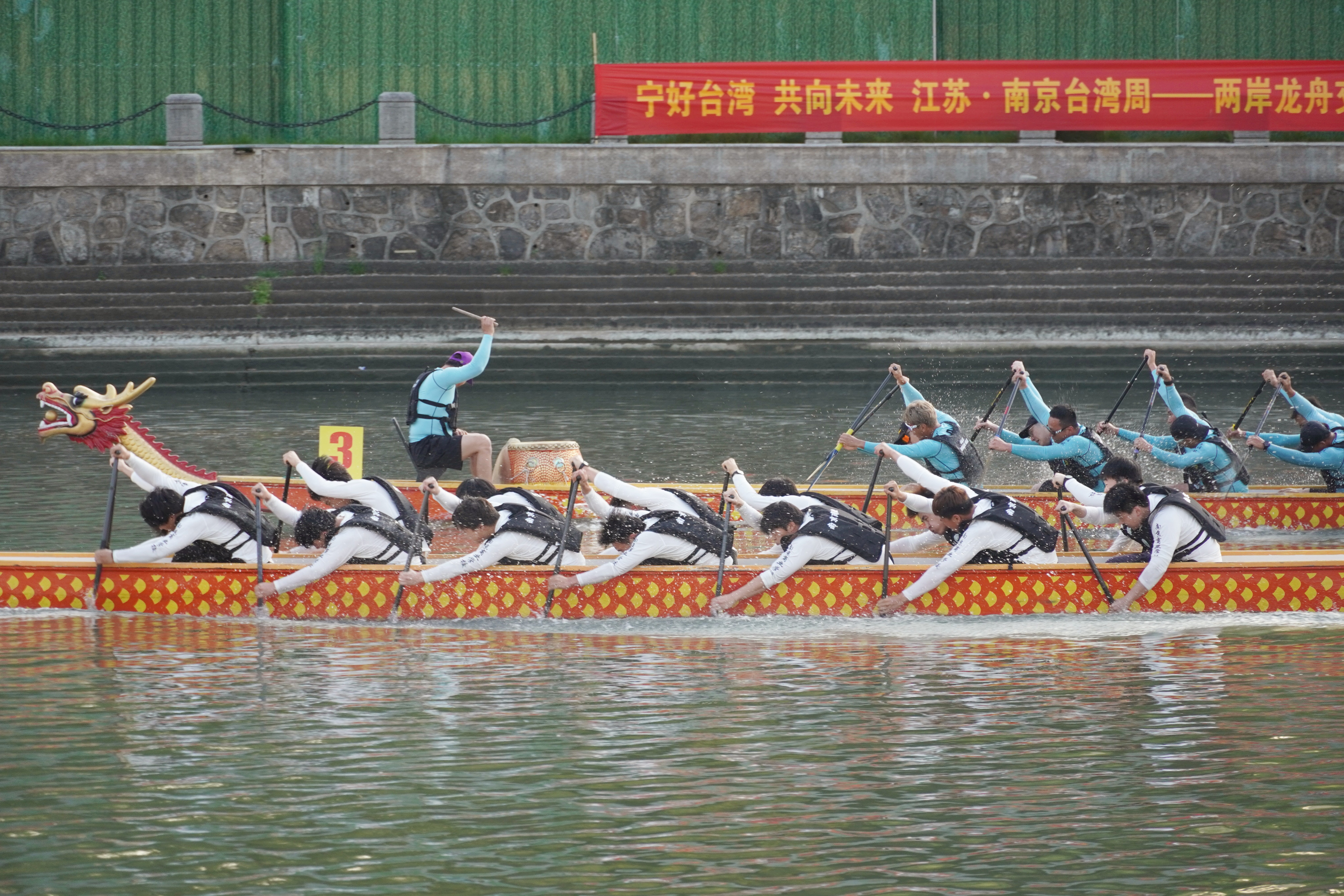 活動現場,南京商業學校、南京程橋高級中學、南京港華三支本地龍舟隊,與來自台灣新北市、宜蘭縣的兩支代表隊參加比賽。經過兩輪激烈角逐,南京程橋高級中學龍舟隊憑藉穩定的發揮和強勁的實力,斬獲本次交流賽事冠軍,宜蘭縣龍舟隊奪得亞軍。