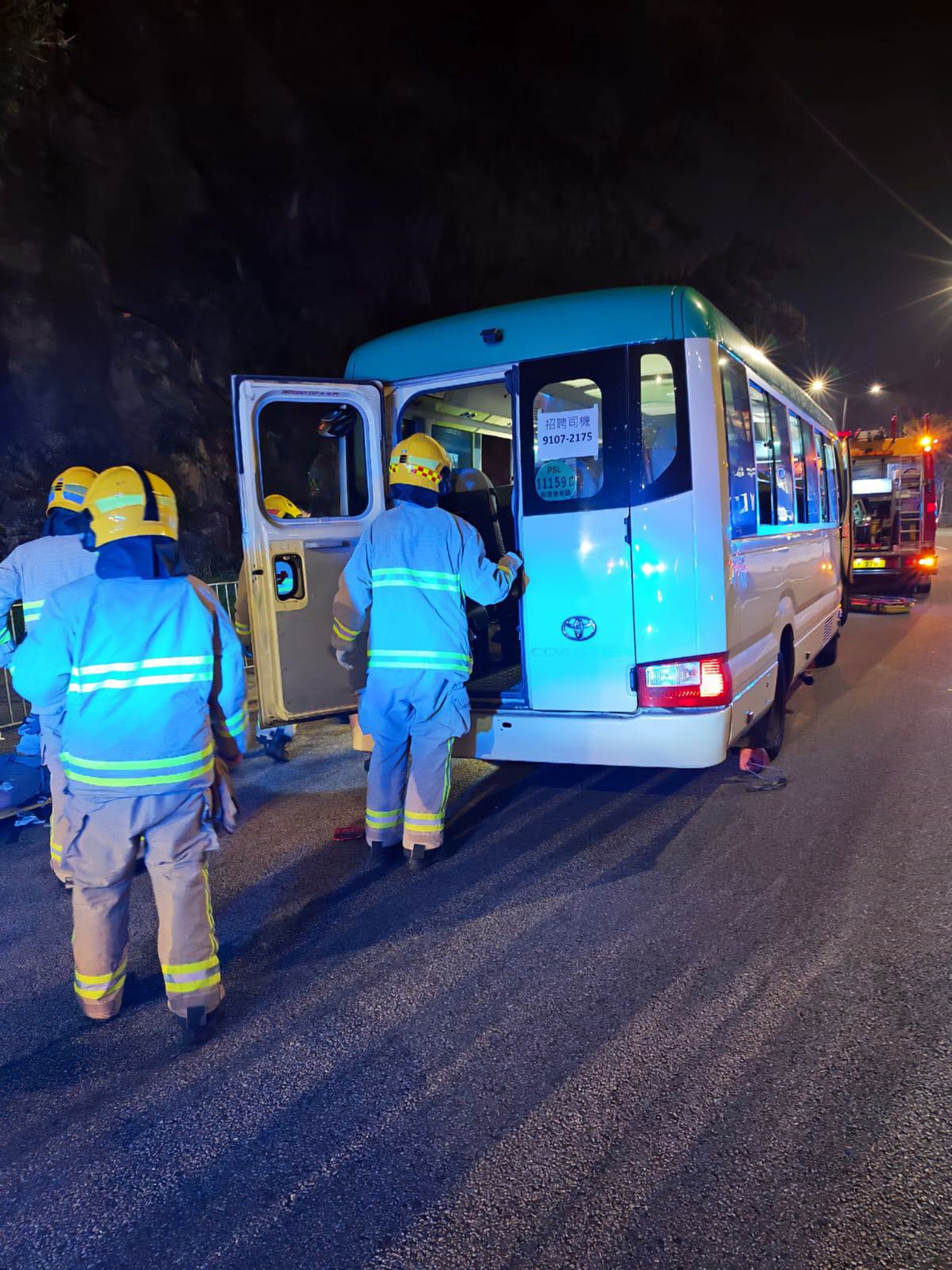 消息指,當時有一輛中型貨車停泊上址路邊,涉事小巴駛至時直撞向貨車車尾。事發後,多輛消防車及救護車到場拯救傷者,警方正調查事故原因。由街坊上載事發現場短片可見,涉事專線小巴停在路中,車頭損毀嚴重變形凹陷,大批人員趕至正展開救援。