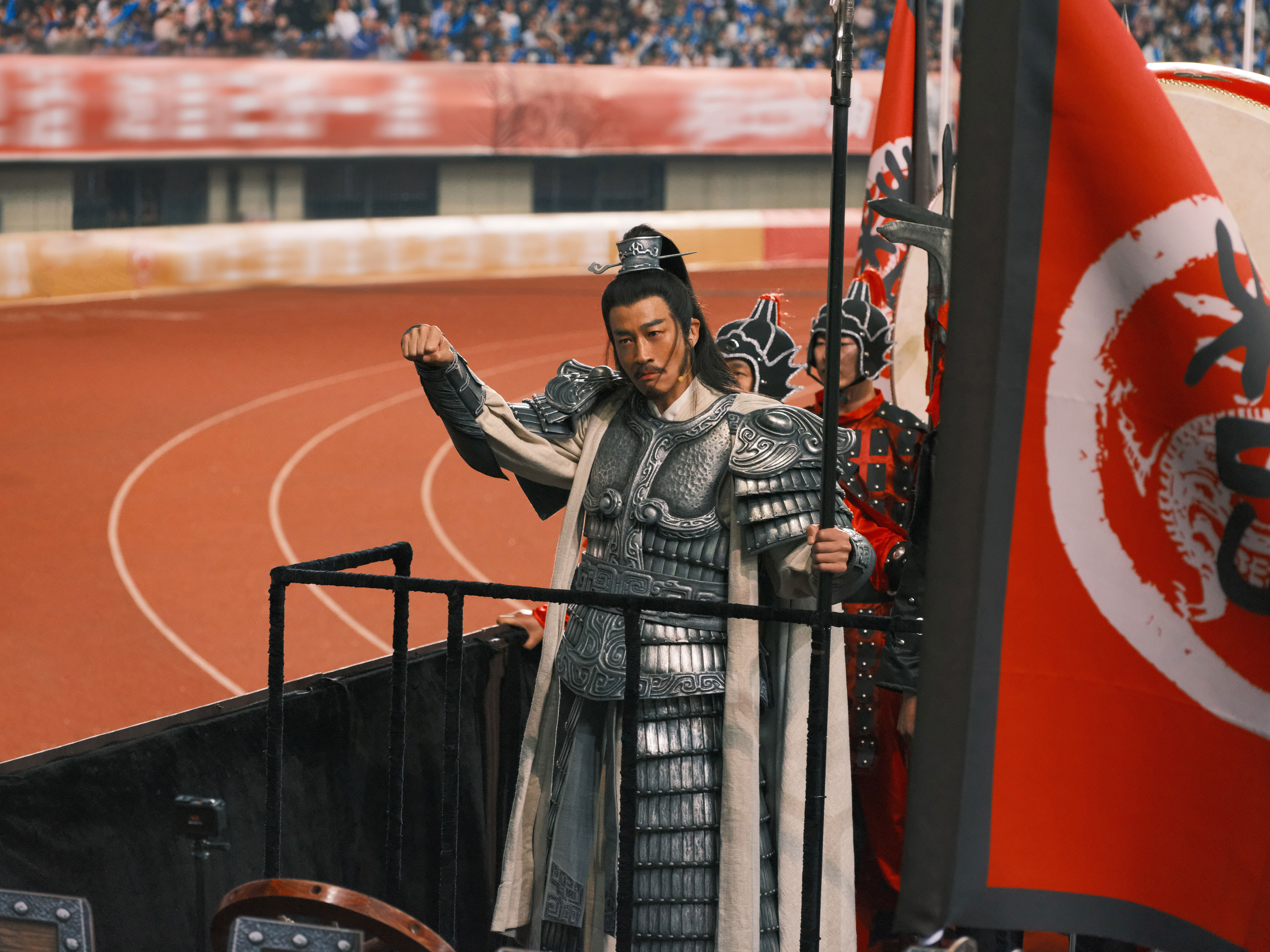 (大公文匯網記者 胡若璋)18日晚,江蘇宿遷奧體中心人聲鼎沸、座無虛席,2026年江蘇省城市足球聯賽(蘇超)宿遷隊主場首秀正式開波。令人驚喜的是,藝人何潤東身着銀色復刻鎧甲、手持長戟,以《楚漢傳奇》中「西楚霸王」項羽的經典造型驚艷登場,登上戰車沿場巡遊,全場近3萬名觀眾瞬間沸騰,歡呼聲、吶喊聲震徹夜空,這一熱血場面也同步在線引發各地網友廣泛關注。