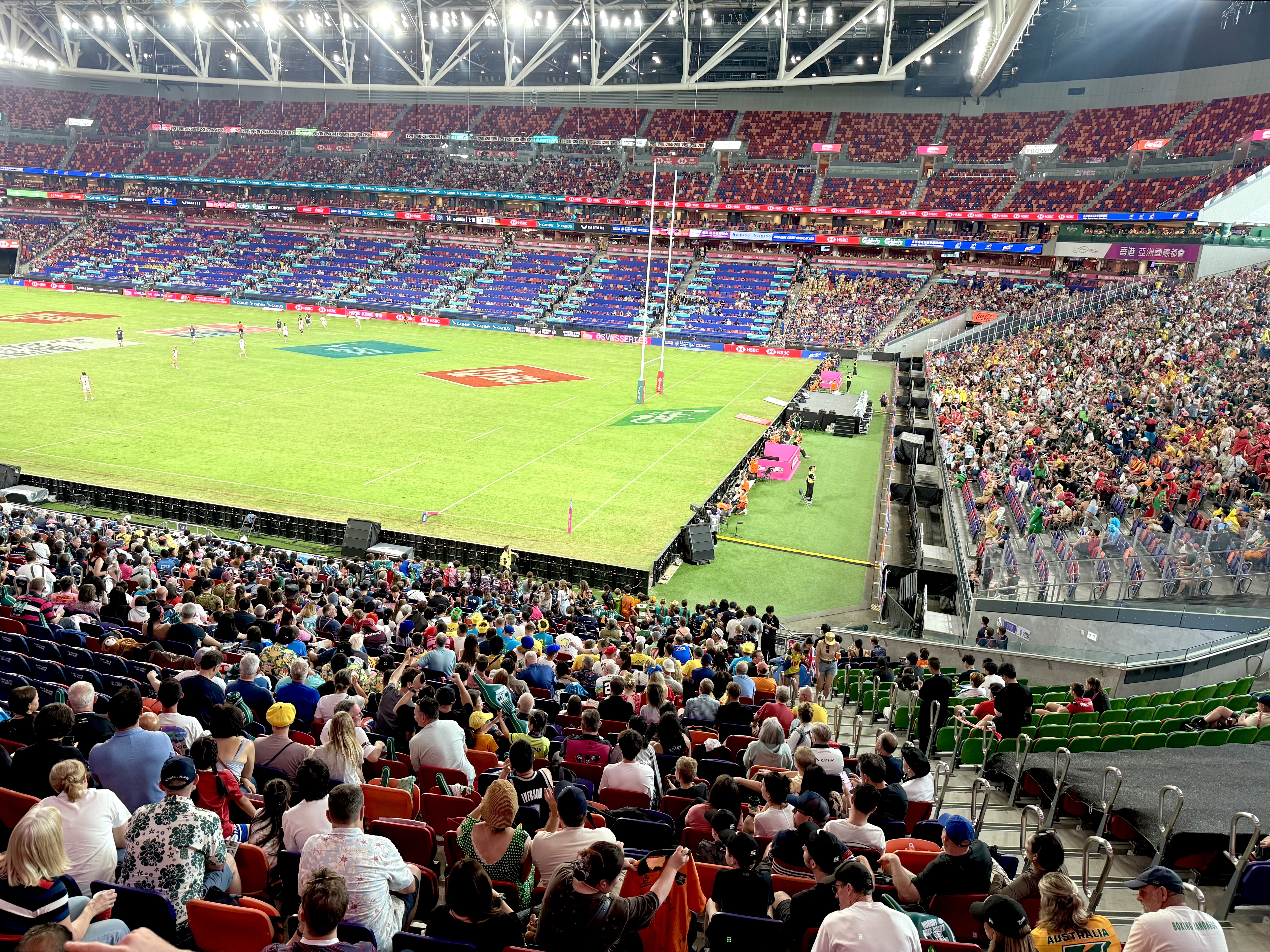 大公文匯全媒體報道,在啟德主場館上演的香港國際七人欖球賽,今日(19日)進行最後一日賽事,吸引大批世界各地的球迷入場。香港男子隊闖入銀劍賽決賽,以19-15擊敗日本,實現三連霸。香港女子隊則以1和1負,無緣銀劍賽決賽。