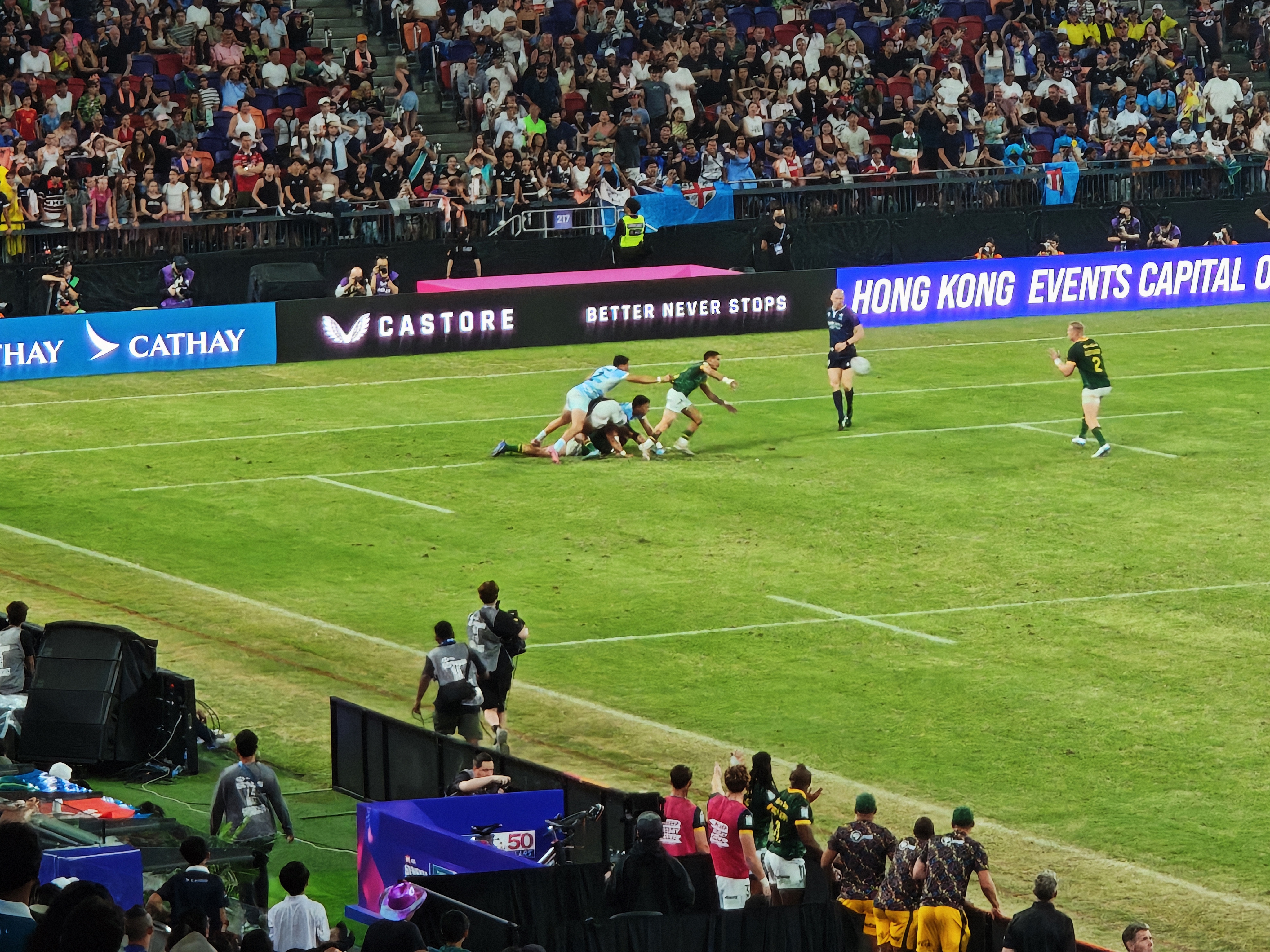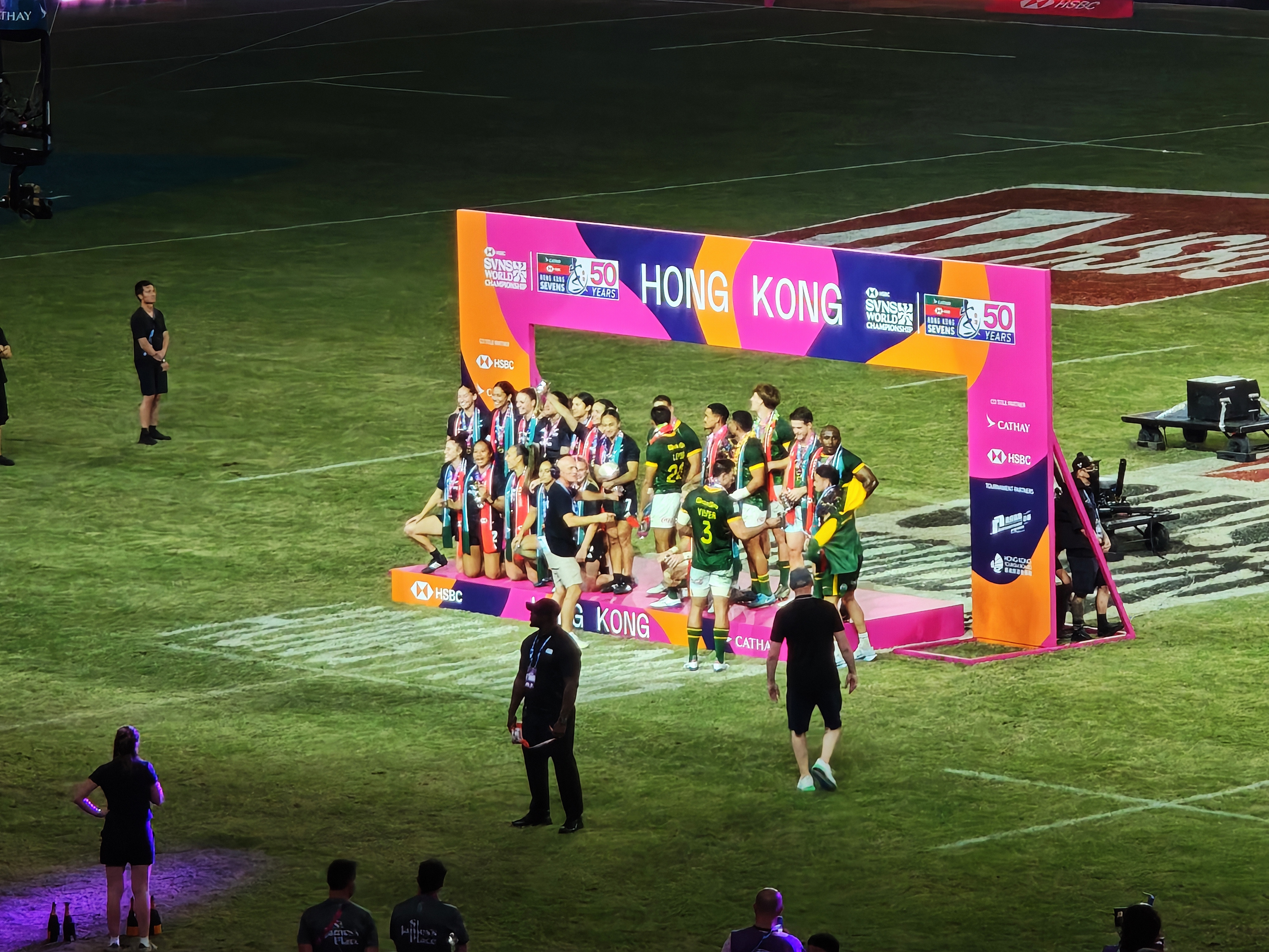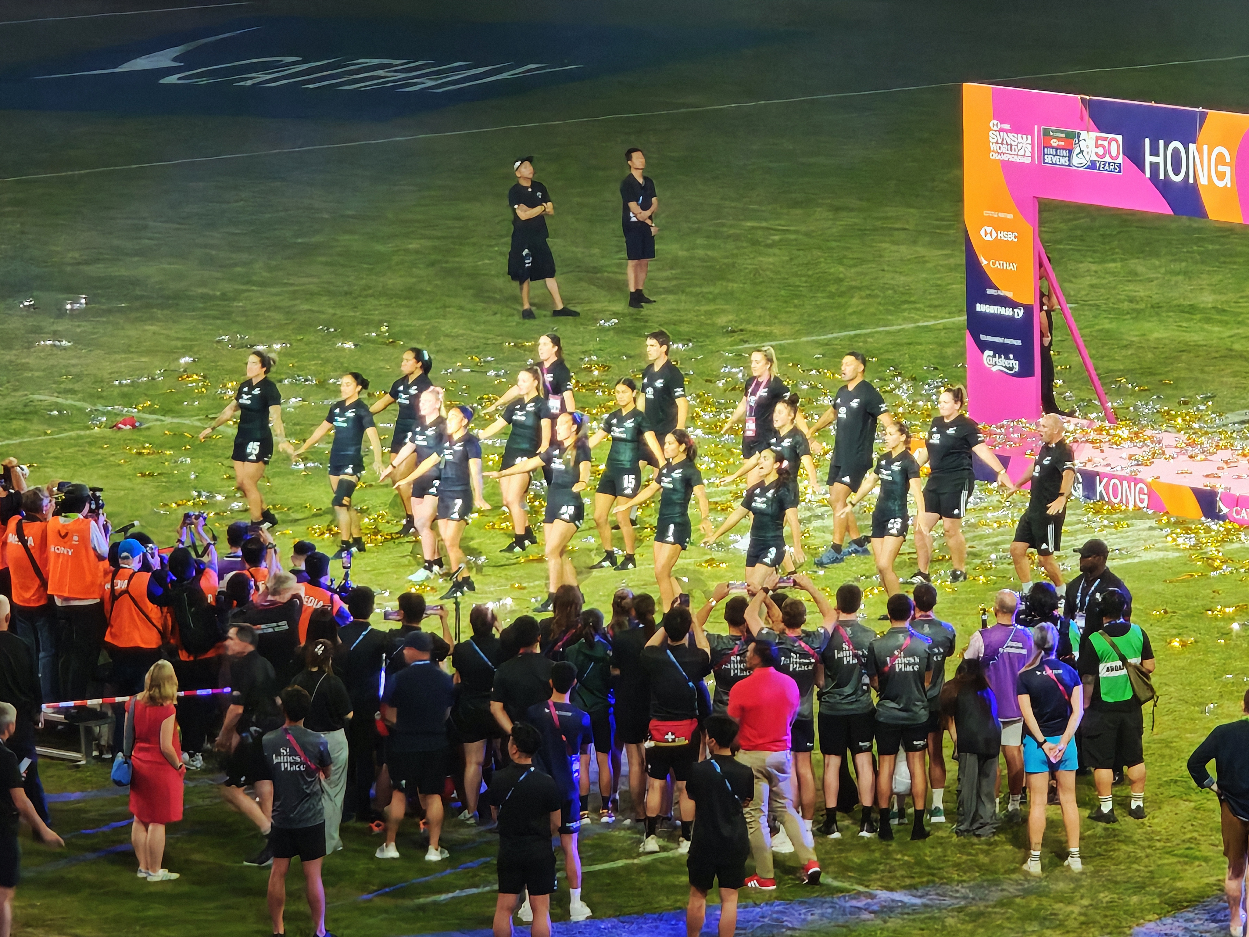 是次賽事男子及女子組冠軍分別由南非和新西蘭奪得,新西蘭隊更在頒獎禮上跳起傳統毛利舞慶祝。伴隨啟德體育園上空綻放的絢麗煙花,來自世界各地的欖球愛好者們「笑着說再見」,一連3日的賽事至此圓滿結束。