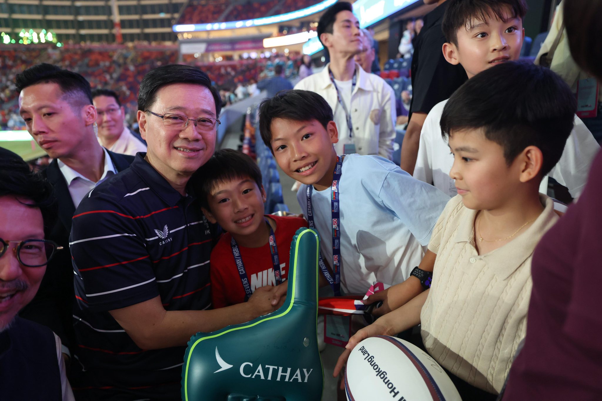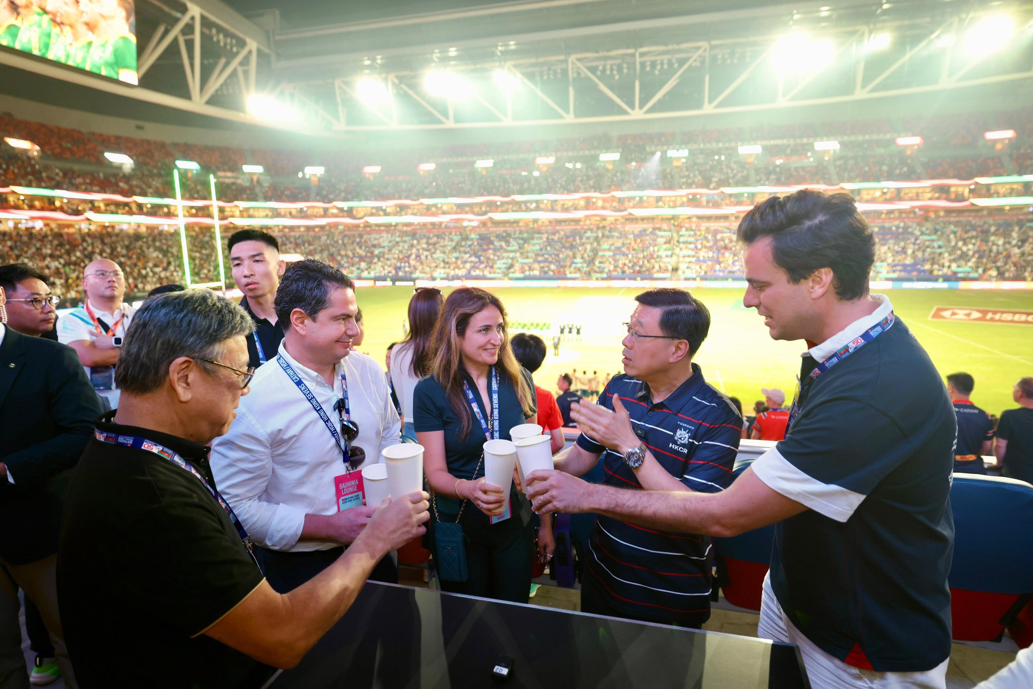 李家超提到,比賽期間他與不同內地和外國企業代表聊天,他們都對香港的七人欖球賽讚不絕口,亦對香港未來的發展充滿信心。香港作為世界各地企業的「超級增值人」,正好發揮國際大都會的重要橋樑角色,協助不同企業以毅力和拼勁為夢想達陣,走向國際。