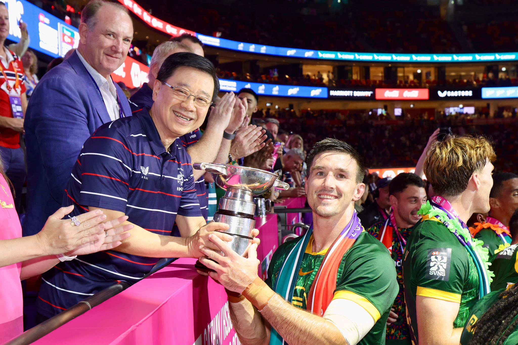 李家超又說,七人欖球賽節奏明快,球員於分秒間攻守互換,在啟德體育園的大草地上大放異彩,以高效策略應對各種挑戰,體現香港活力多變、永不言敗的精神。香港定必繼續發揮國際七人欖球賽的活力,向世界展現盛事之都的魅力和多元文化,以拚勁在世界舞台發光發亮。