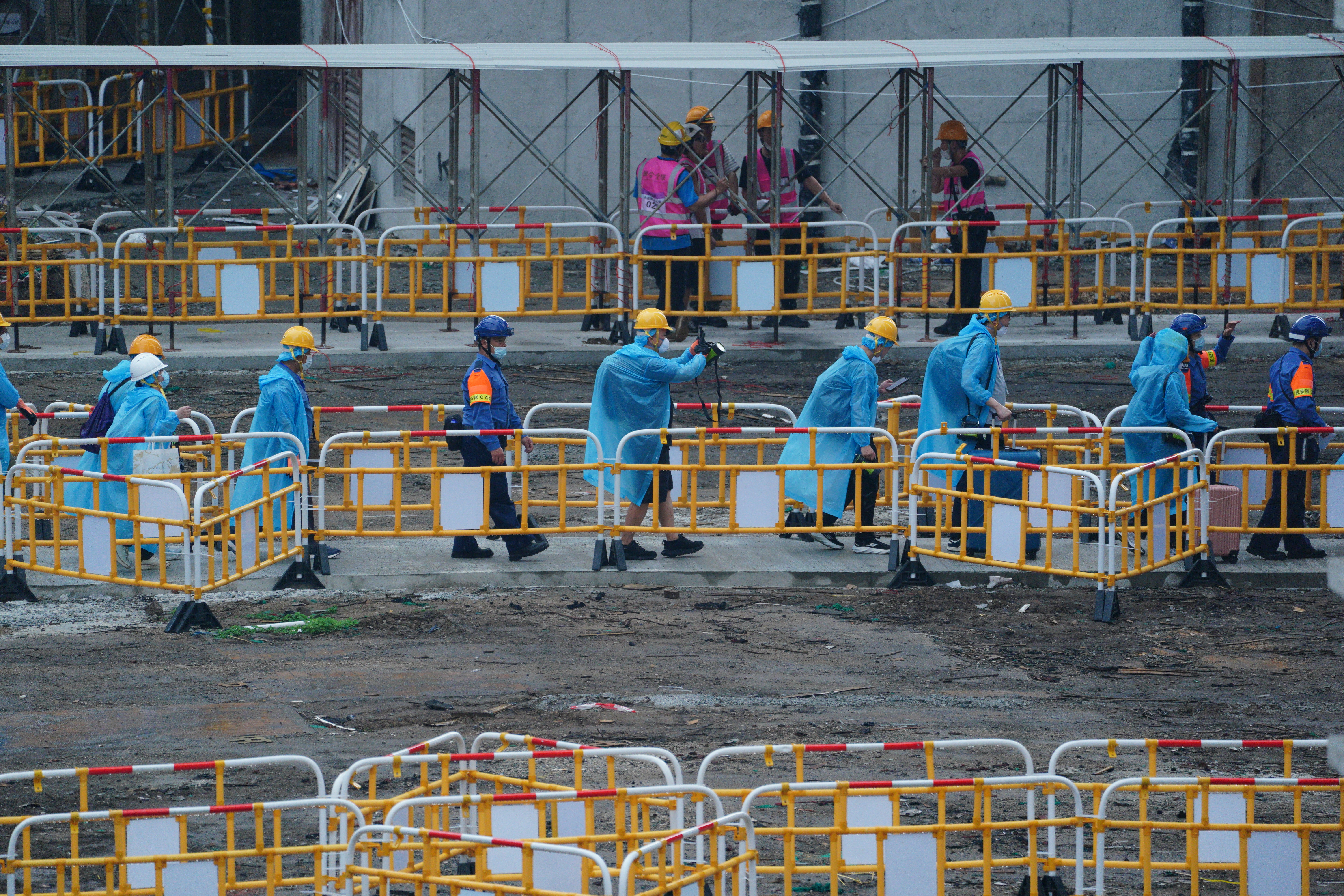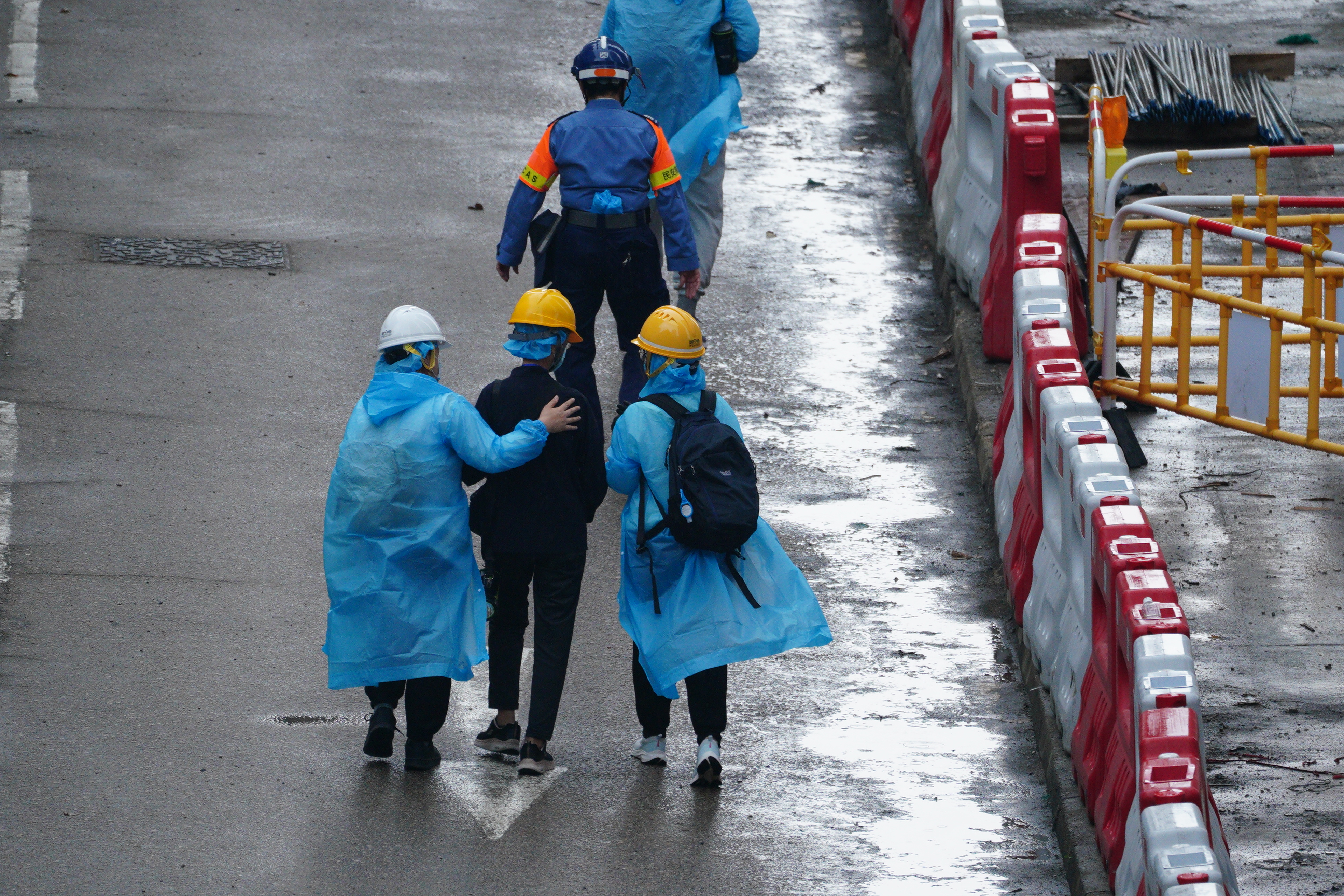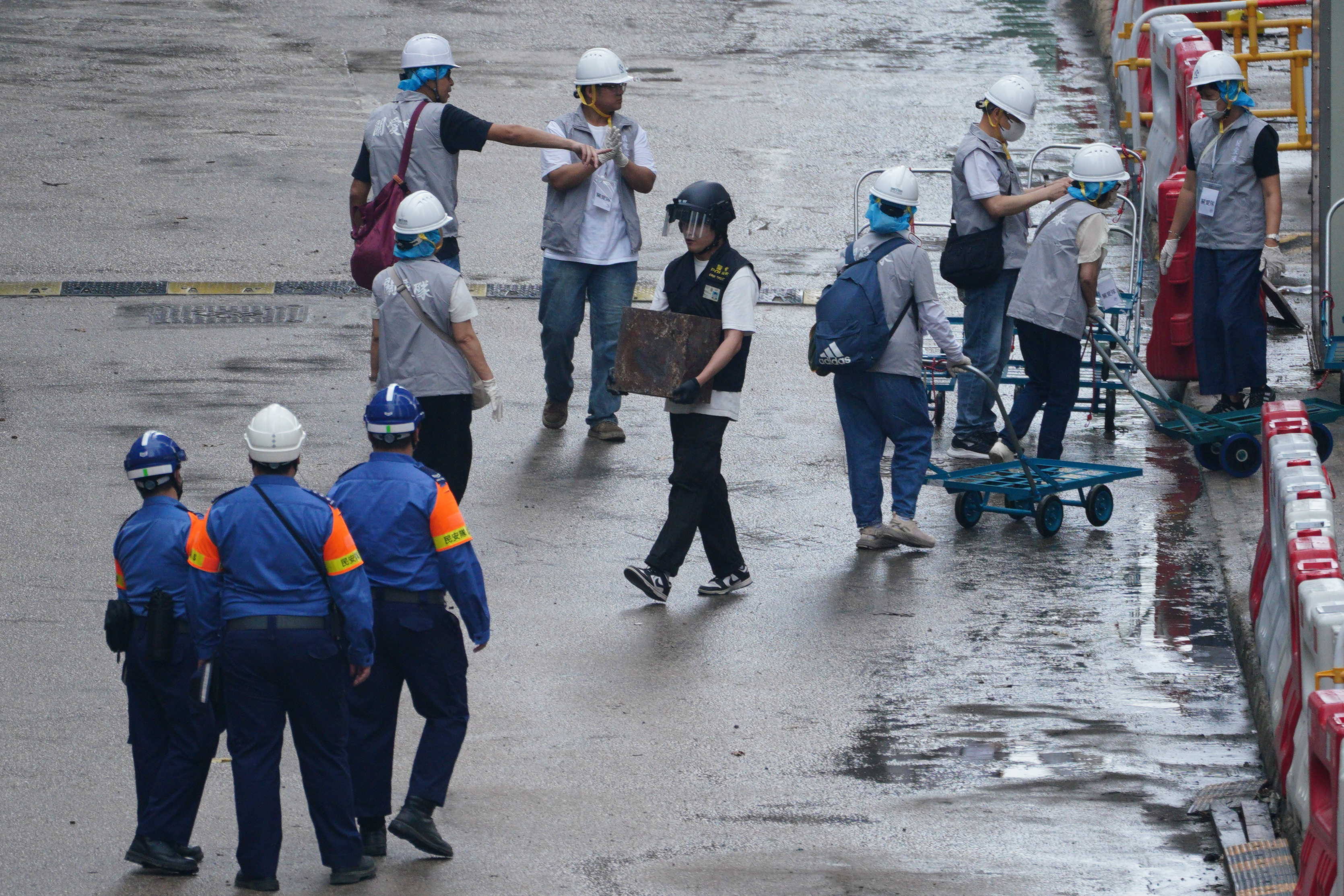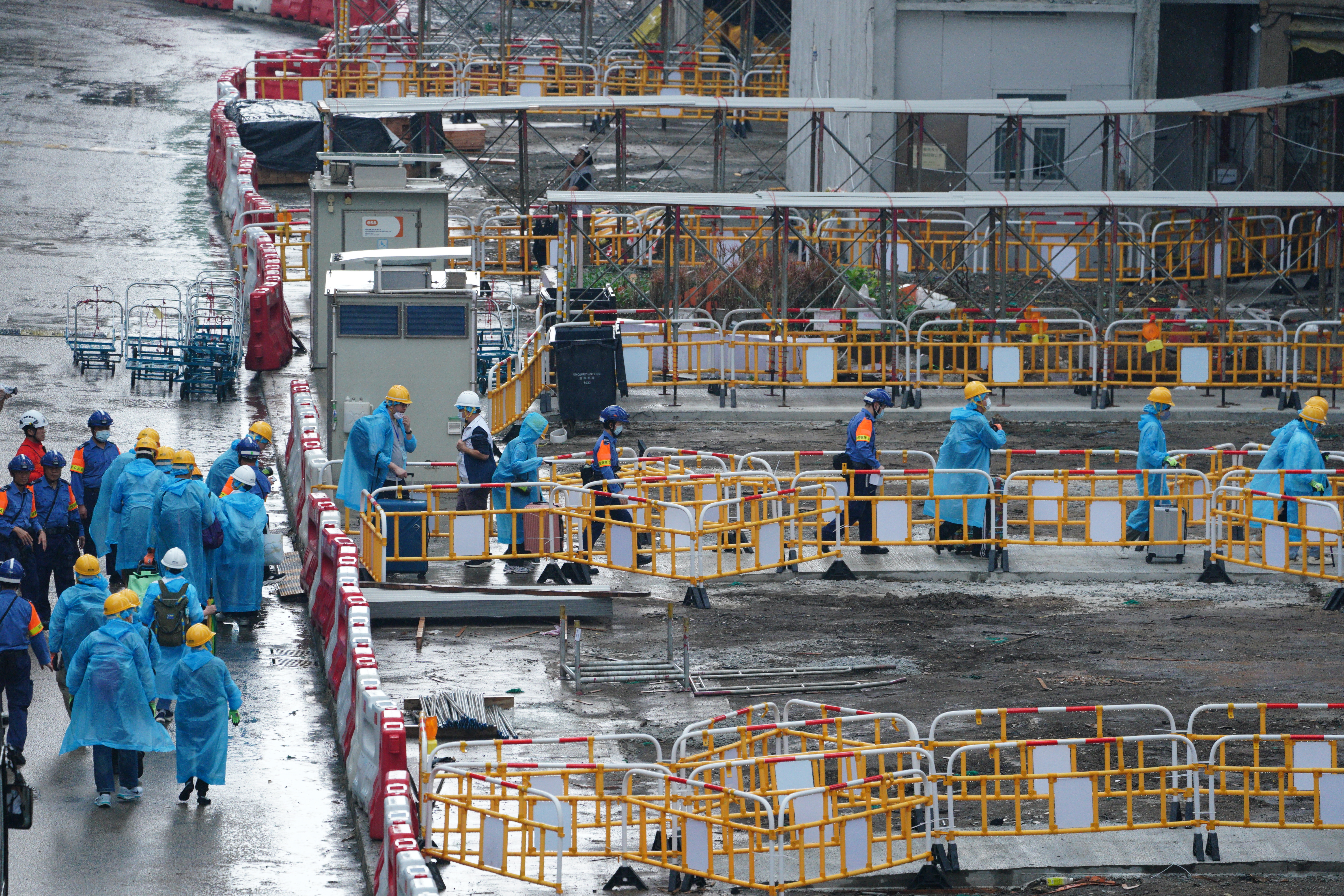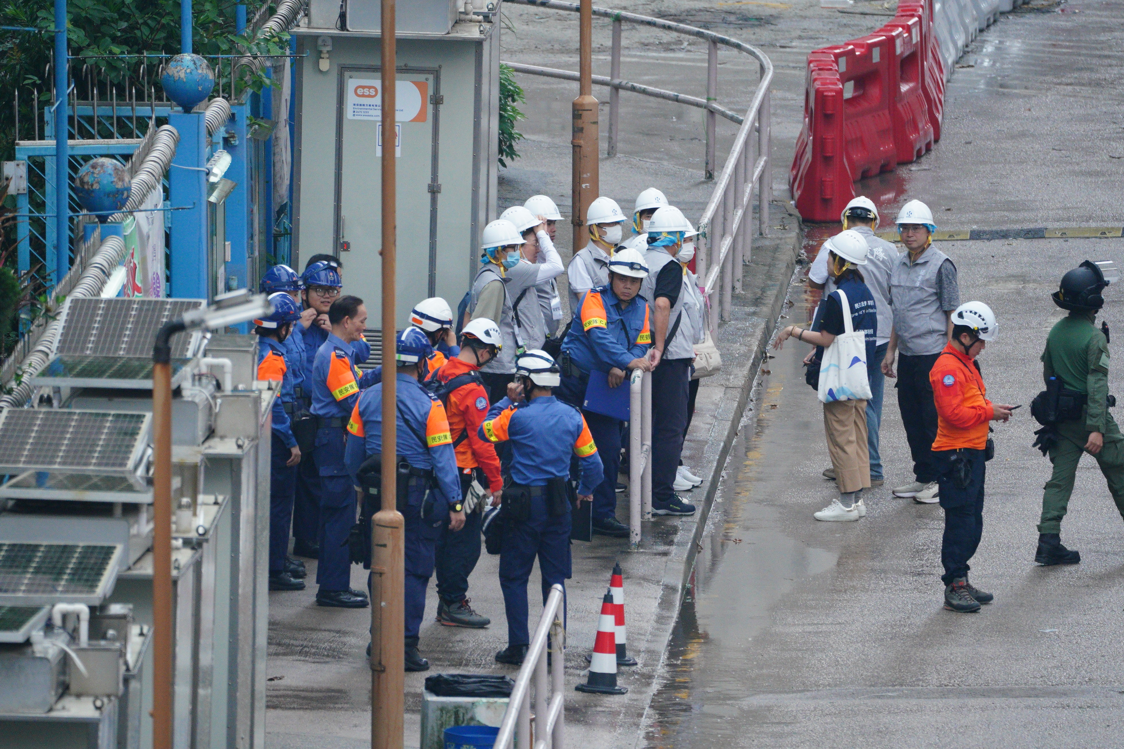 (大公文匯全媒體記者 九皋)宏福苑7幢樓宇居民今日(20日)起可分批返回單位執拾,首三日先讓宏新閣居民「回家」執拾物品。天文台在今日中午12時15分發出雷暴警告,大埔宏福苑現場亦迎來驟雨,政府人員及關愛隊風雨不改地協助居民。