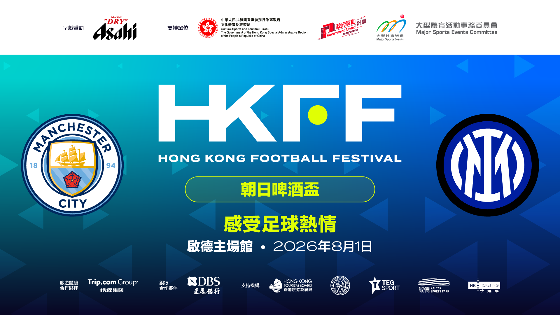 據介紹,香港足球盛會2025反響熱烈,兩場比賽共吸引超過10萬名球迷到場。今年賽程依然精彩,8月1日將上演「朝日啤酒盃」曼城對國際米蘭;8月5日的「健絡通盃」則將由車路士對陣祖雲達斯。