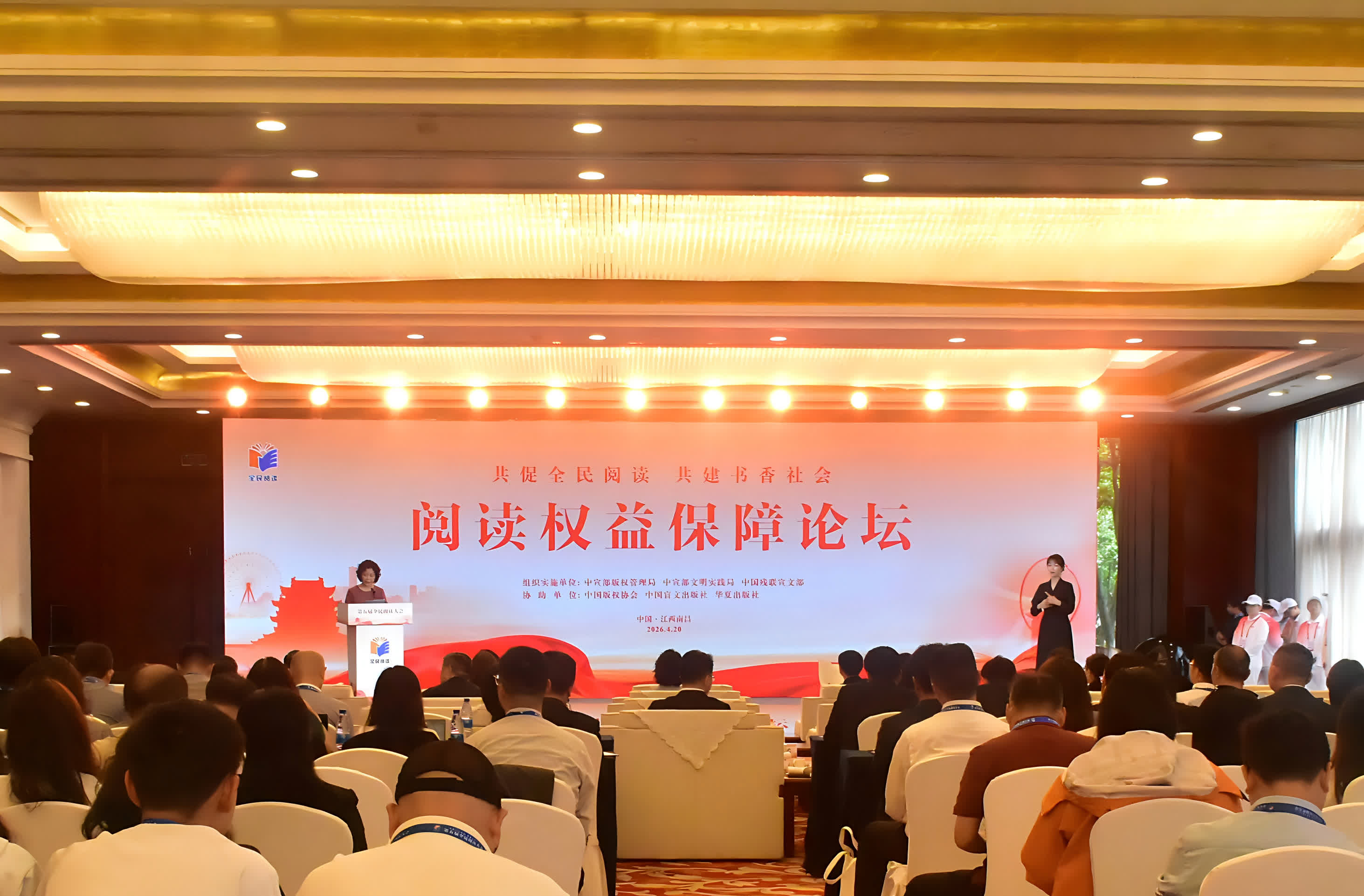 4月20日,第五屆全民閱讀大會·閱讀權益保障論壇在江西省南昌市舉辦。論壇以「賡續紅色書香,保障平等閱讀」為主題,深入探討版權保障與無障礙閱讀服務的融合路徑,切實推動閱讀權益普惠,助力全民閱讀高質量發展。來自文化出版、版權管理、殘疾人工作、特殊教育等領域的代表及港澳殘疾人代表等200餘人出席論壇。