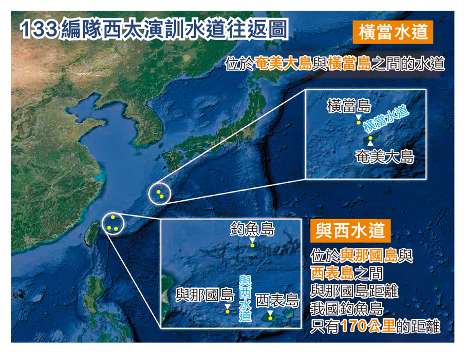 公開報道顯示,與西水道位於日本與那國島與西表島之間,長約60海里,寬約32海里,是連接太平洋和中國東海的重要通道。出與西水道北口不遠,就是中國固有神聖領土——釣魚島。