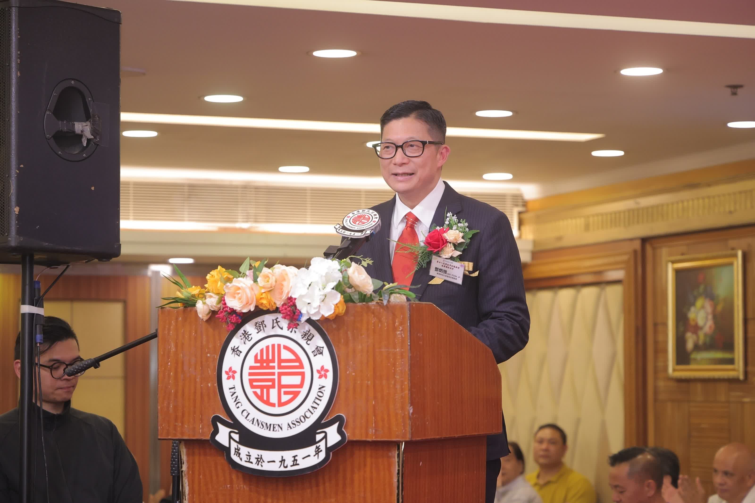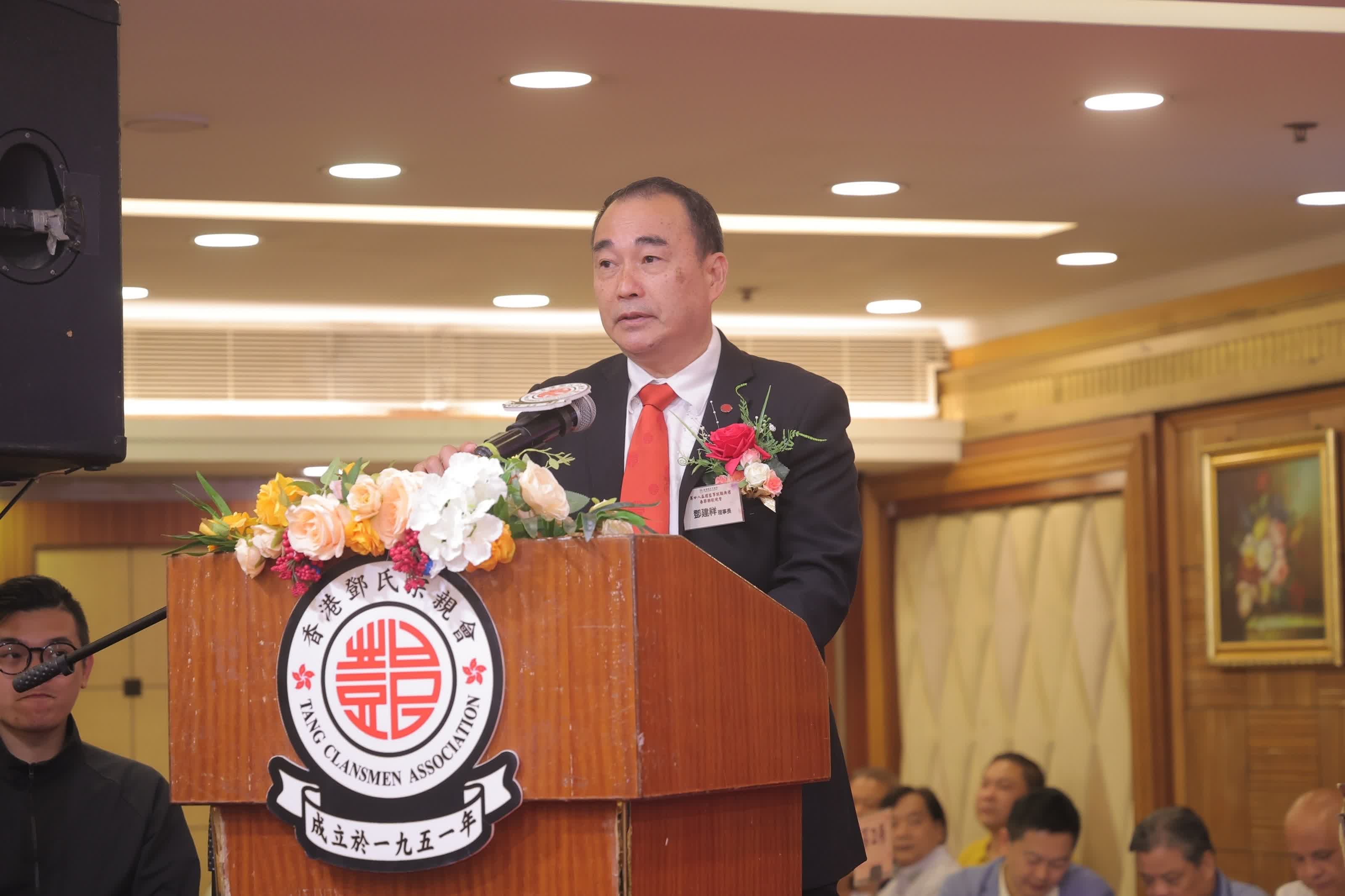 鄧炳強致辭讚揚該會熱心服務社區,更發揚敬老精神,亦鼓勵年輕一代勤奮向上,是社會的重要力量,他指,今年是國家「十五五」規劃的開局之年,也是特區政府進一步深化改革、全力拼經濟、謀發展、搞建設、惠民生的一年。他表示,鄧氏宗親遍布全球的華僑社群,擁有開闊的視野和廣泛的網絡,是國家和香港聯繫世界的重要力量,他相信該會在新一屆理監事帶領下,繼續與特區政府攜手並肩,積極凝聚社會力量,推動國家和香港的高質量發展。