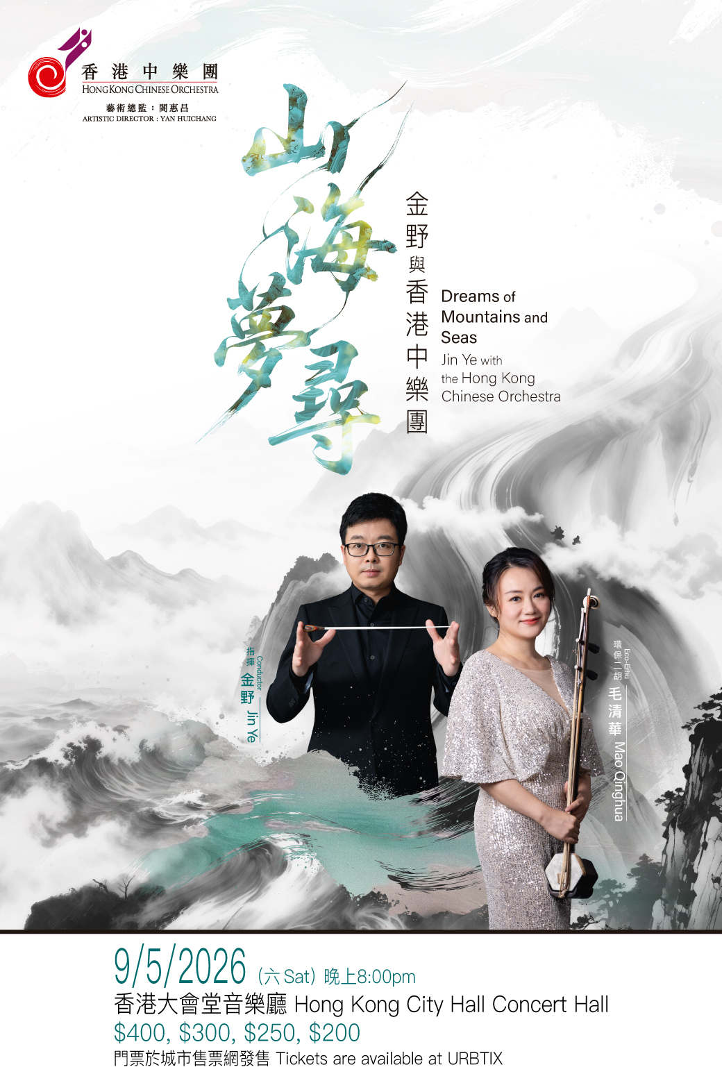 大公文匯全媒體報道,香港中樂團「山海夢尋」音樂會將於5月9日在香港大會堂舉行。本次音樂會由中國音樂學院指揮系主任金野教授執棒,精選多部以山水為載體的音畫傑作,包括民族交響音畫《南海》、《西湖夢尋》以及《龜茲盛歌》,以音符描繪山海氣象、湖光夢影與西域風情。樂團胡琴聯合首席兼中胡首席毛清華,將以環保二胡演繹《桃花源》。