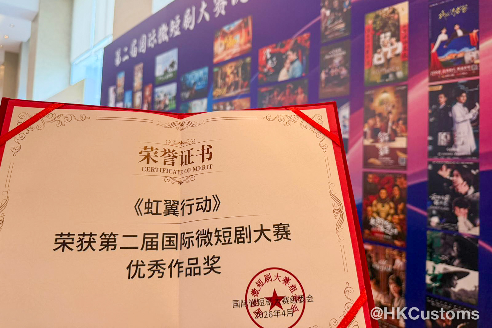 另外,香港海關早前與廣州廣播電視台協拍的首部微短劇 — 《虹翼行動》,於「第二屆國際微短劇大賽」榮獲優秀作品獎,並於論壇期間獲頒榮譽證書,標誌著團隊的創意、製作及宣傳成效獲得大會專業肯定。