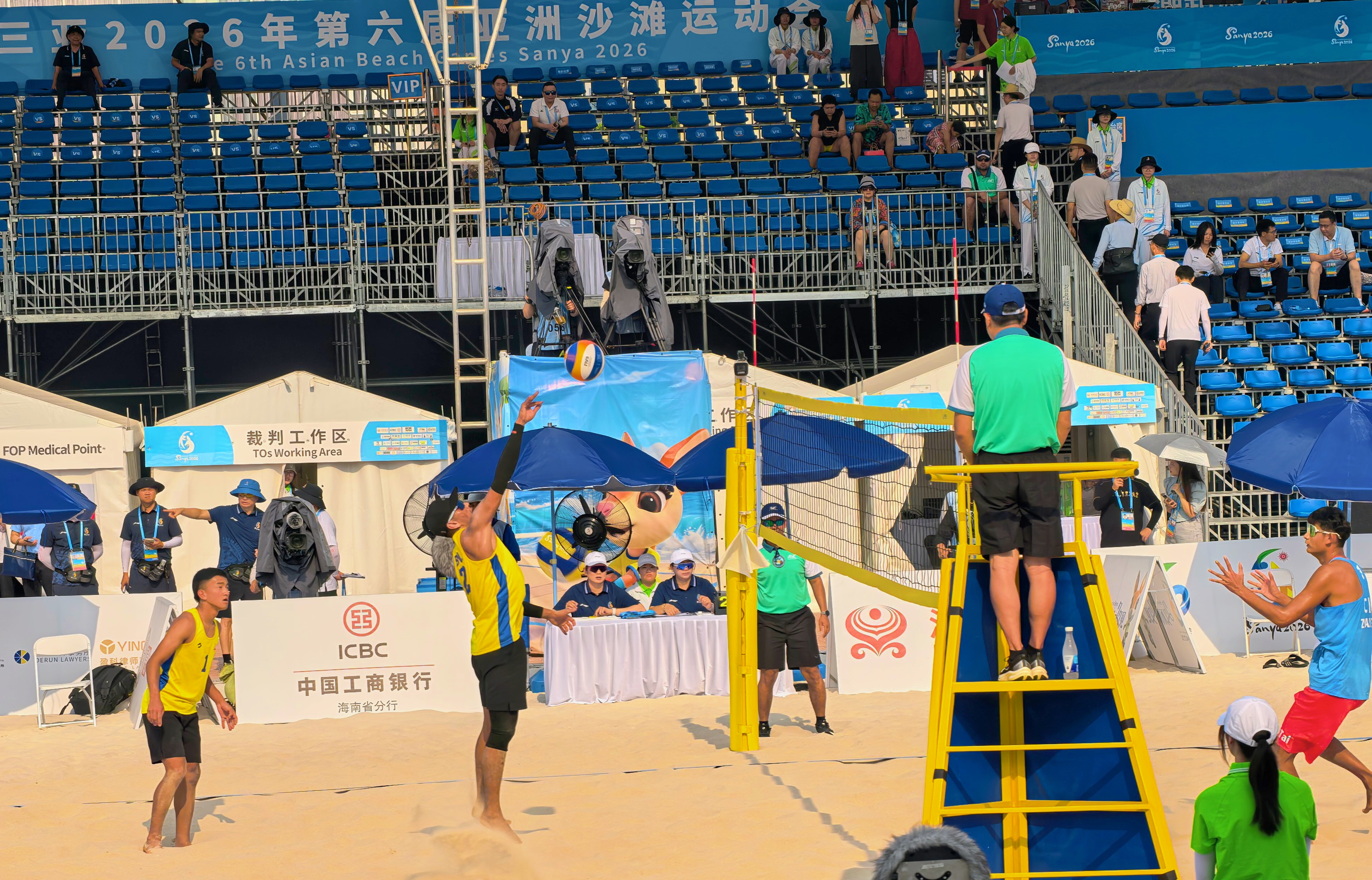 (大公文匯網 記者 何玫)2026年第六屆亞洲沙灘運動會(三亞亞沙會)已於22日晚在三亞亞沙公園正式開幕。本屆賽事共設14個大項、62個小項,吸引了亞洲45個國家和地區的近1800名運動員參賽,創歷屆規模之最。沙灘排球作為核心項目之一,今天早上在天涯海角競賽場館群展開角逐。
