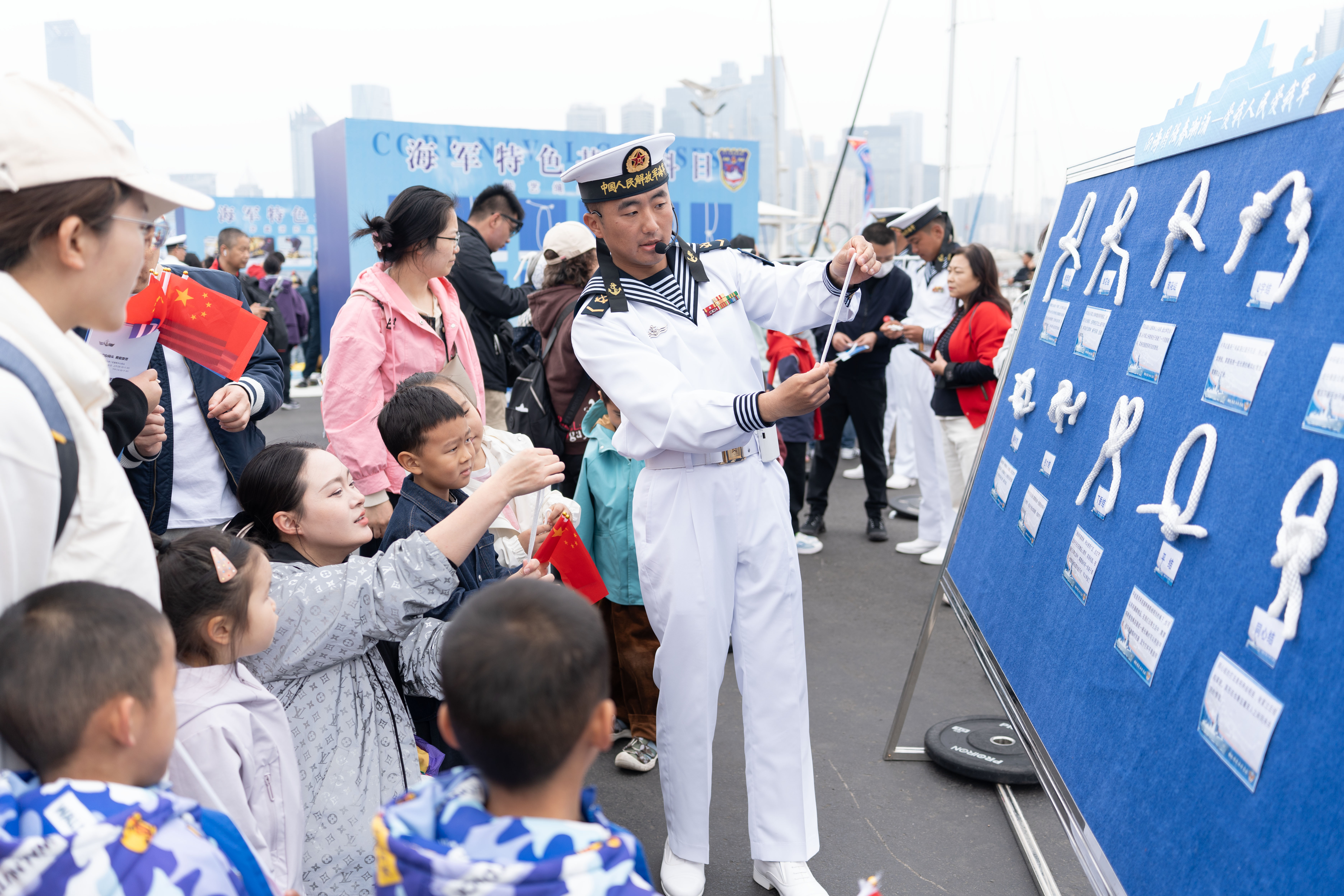 為讓參觀者近距離感受海軍官兵的日常訓練與實戰技能,現場專門開設國際信號旗語、自攜式潛水裝具穿戴、消防戰鬥服穿戴、繩結技巧等多個科目展示體驗板塊,讓市民親身體驗軍營生活,零距離觸摸深藍力量,以最真誠的姿態迎接每一位參訪者。