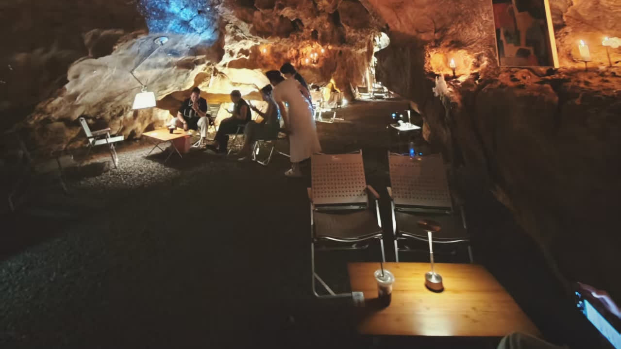 走進貴陽市修文縣景陽街道香巴湖村的「山由XIU」洞穴咖啡,沿着石板與碎石步道拾級而上,一處鑲嵌於喀斯特溶洞中的咖啡空間豁然呈現。凹凸起伏的鐘乳石岩壁在暖光映照下泛出溫潤光澤,咖啡醇香與山間清風、洞中水滴交織,營造出獨特的自然沉浸式體驗。