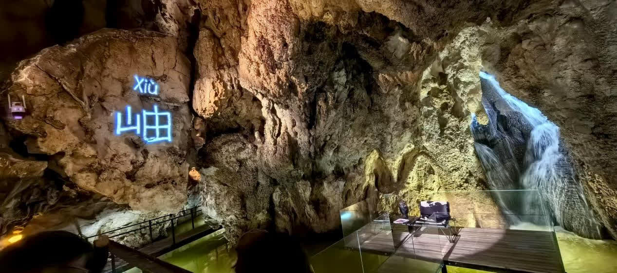 「『山由XIU』這個名字藏着我們的巧思——『山由』來自公司名,『岫』字是『山』與『由』的合體,這個字本身在古語中就代表洞穴。」貴州山由文旅資源開發運營有限公司副總經理許惠介紹,「我們去年8月8日開業,總投資約230萬元。截至目前,已接待超過4萬名遊客,會員系統錄入了超過10萬人。」