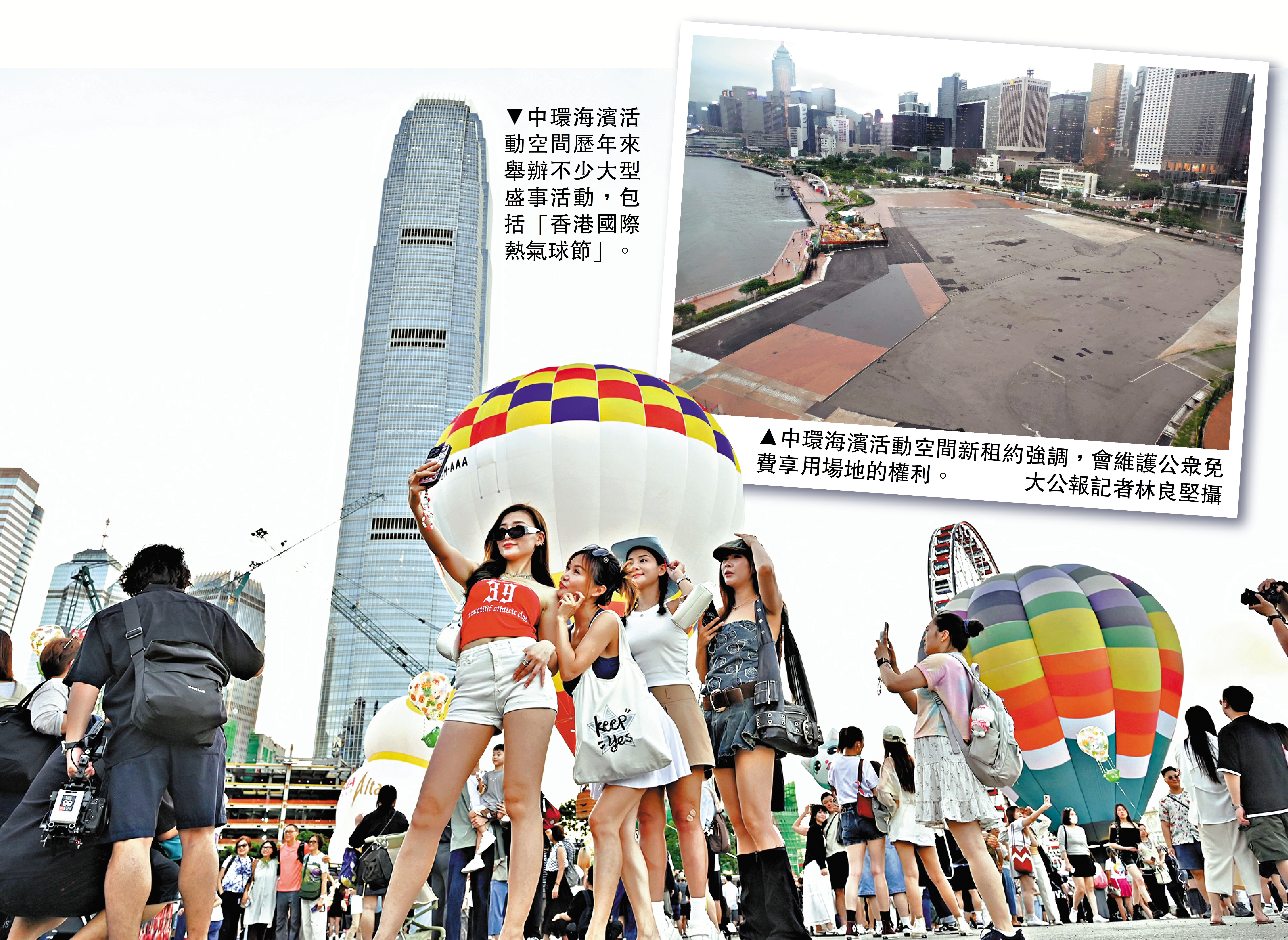 中環海濱活動空間目前租約將於6月30日完結,發展局於今年1月重新招標,汲取去年熱氣球節「甩轆」經驗,加入多項「加辣」條款,強化租約承租人對日後活動舉辦方的監察角色,並常規化溝通預警機制等。發展局昨日公布,經評審六份標書的指標承諾後,決定中標者為忠啟有限公司(恒基兆業及耀榮文化各持一半股權),該公司將按經強化的場地管理條款管理及保養活動空間,以供舉辦活動之用。