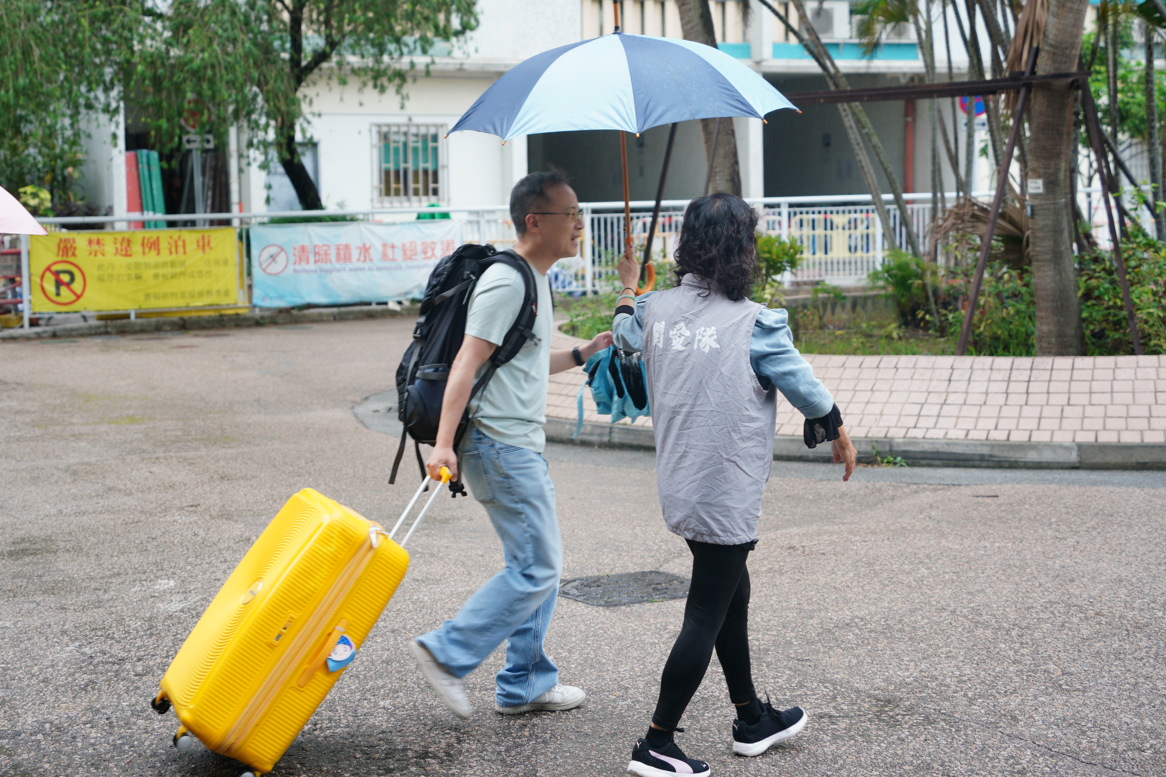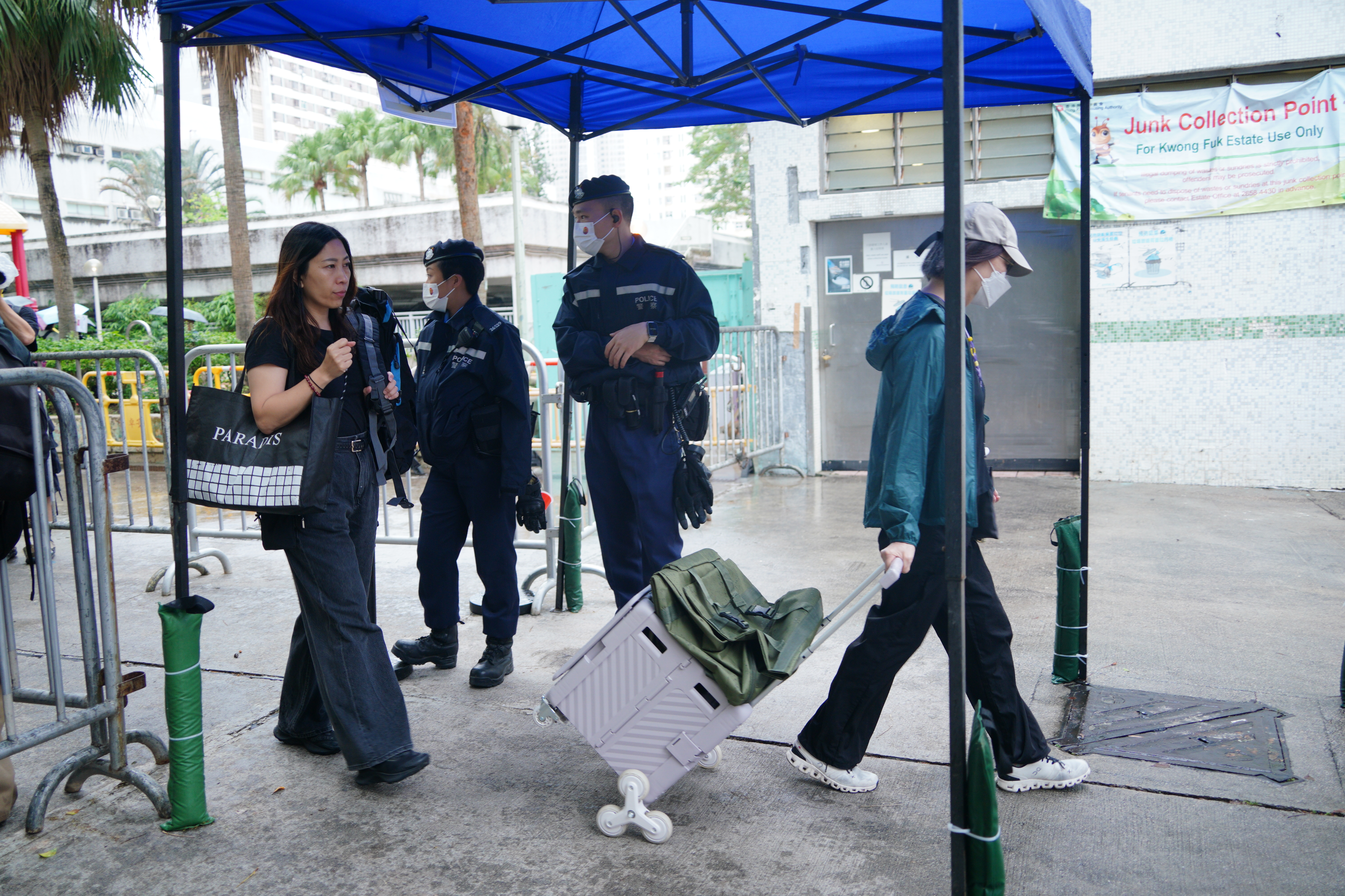 儘管現場下着小雨,整個過程仍井然有序。大公文匯全媒體記者現場所見,有住戶以父子檔形式上陣,背起背囊準備回家整理重要財物;亦有年長居民因體力等因素未能親身返回單位,只能透過上樓執拾的家人以手機拍攝相片,了解單位內情況。此外,關愛隊亦為準備重返單位的市民打傘,警方則在場維持秩序。
