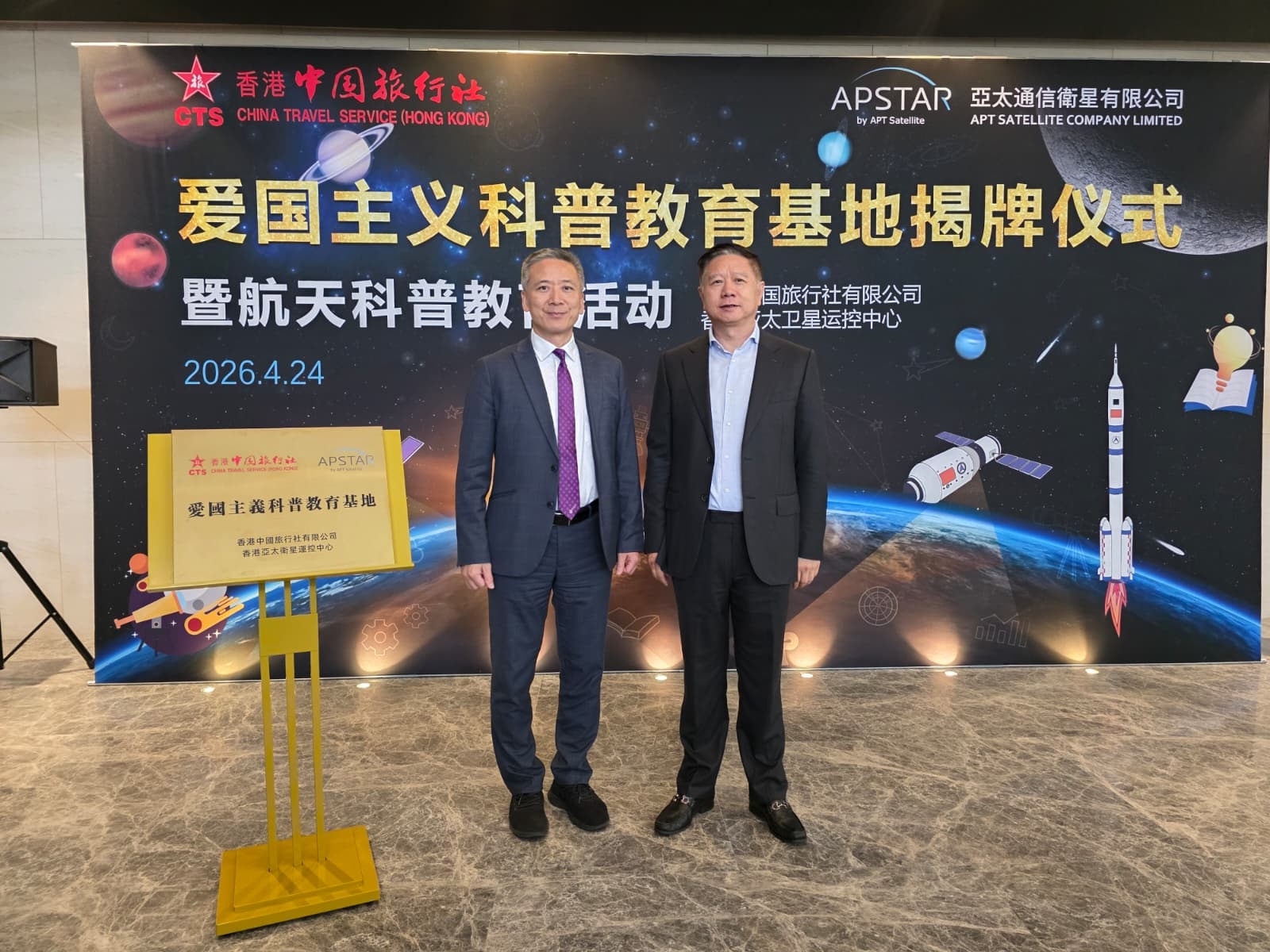 (大公文匯全媒體記者梁譯尹報道)今年4月24日是第十一個「中國航天日」,為深入貫徹落實愛國主義教育,充分利用亞太衛星在航天領域的獨特資源優勢,香港中國旅行社有限公司與亞太通信衛星有限公司今日(24日)聯合舉辦「愛國主義科普教育基地」揭牌儀式暨航天科普教育活動。