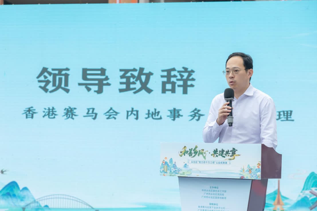 活動開幕式上,香港賽馬會內地事務高級經理陸遠在致辭中表示,香港賽馬會非常榮幸能支持從化區「百千萬工程」建設,並見證其取得的豐碩成果。作為愛國愛港的機構,香港賽馬會始終致力於支持從化社會經濟發展,通過年度公益計劃持續捐贈區內醫療衞生、文體旅、教育、青少年發展等領域的民生項目,支持從化建設「環兩山引領區」,為「百千萬工程」注入源源不斷的動力。未來,賽馬會將繼續發揮企業資源優勢,扎根從化、服務鄉村,助力從化建設和善鄉風、推動鄉村振興。