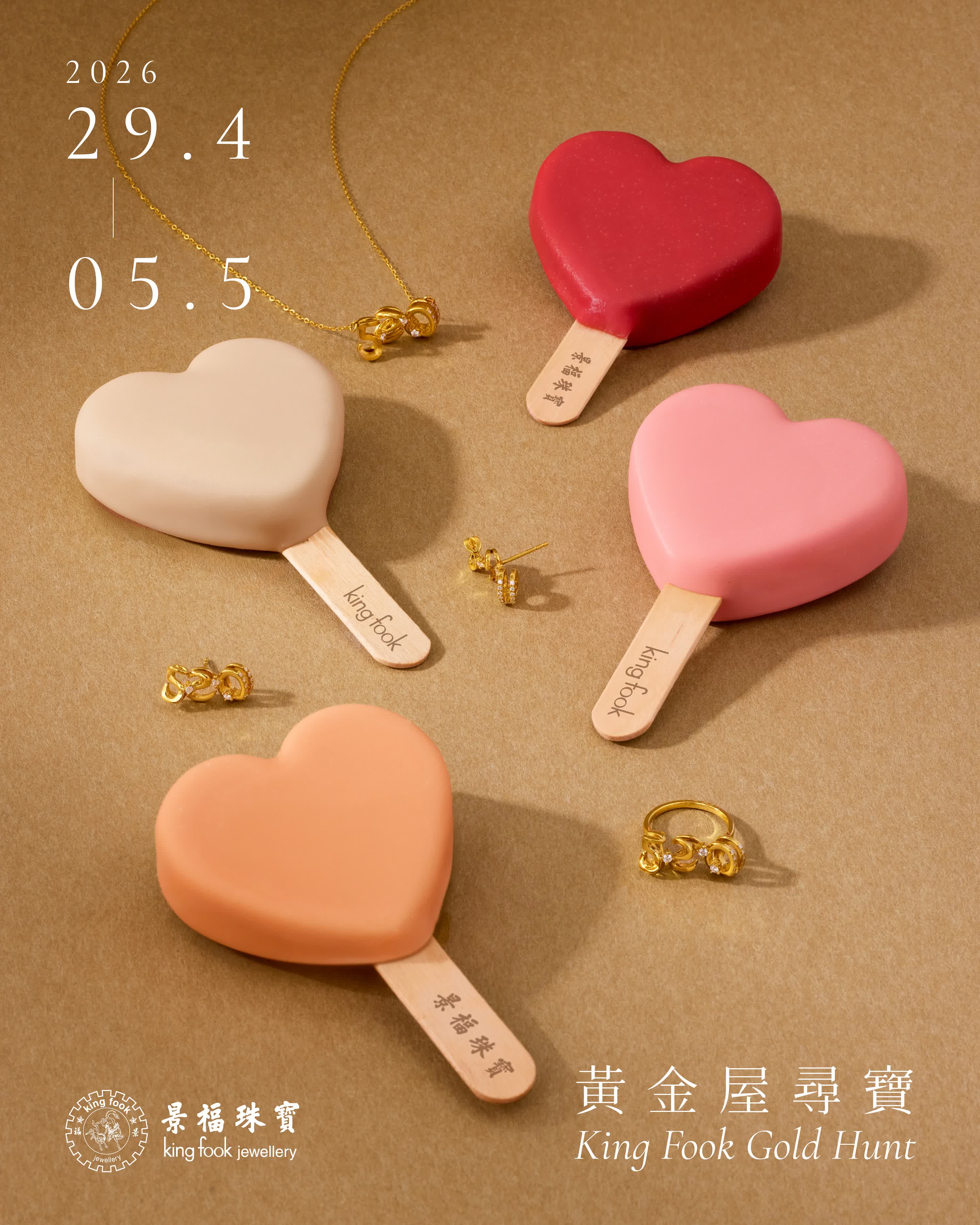 以融合珠寶設計與傳統奢華工藝著稱的景福珠寶,推出520特別企劃「黃金屋尋寶」活動。顧客只需於4月29日至5月5日期間(每日下午2時到6時),親臨指定景福珠寶及masterpiece by king fook 門店完成尋寶打卡,即可獲贈限量本地人氣雪糕品牌「甜筒暉」(TEEMTONEfai)心形雪條,一邊享受甜蜜滋味,一邊發掘品牌「密語」系列在正面及側面呈現雙重甜蜜訊息的設計巧思。