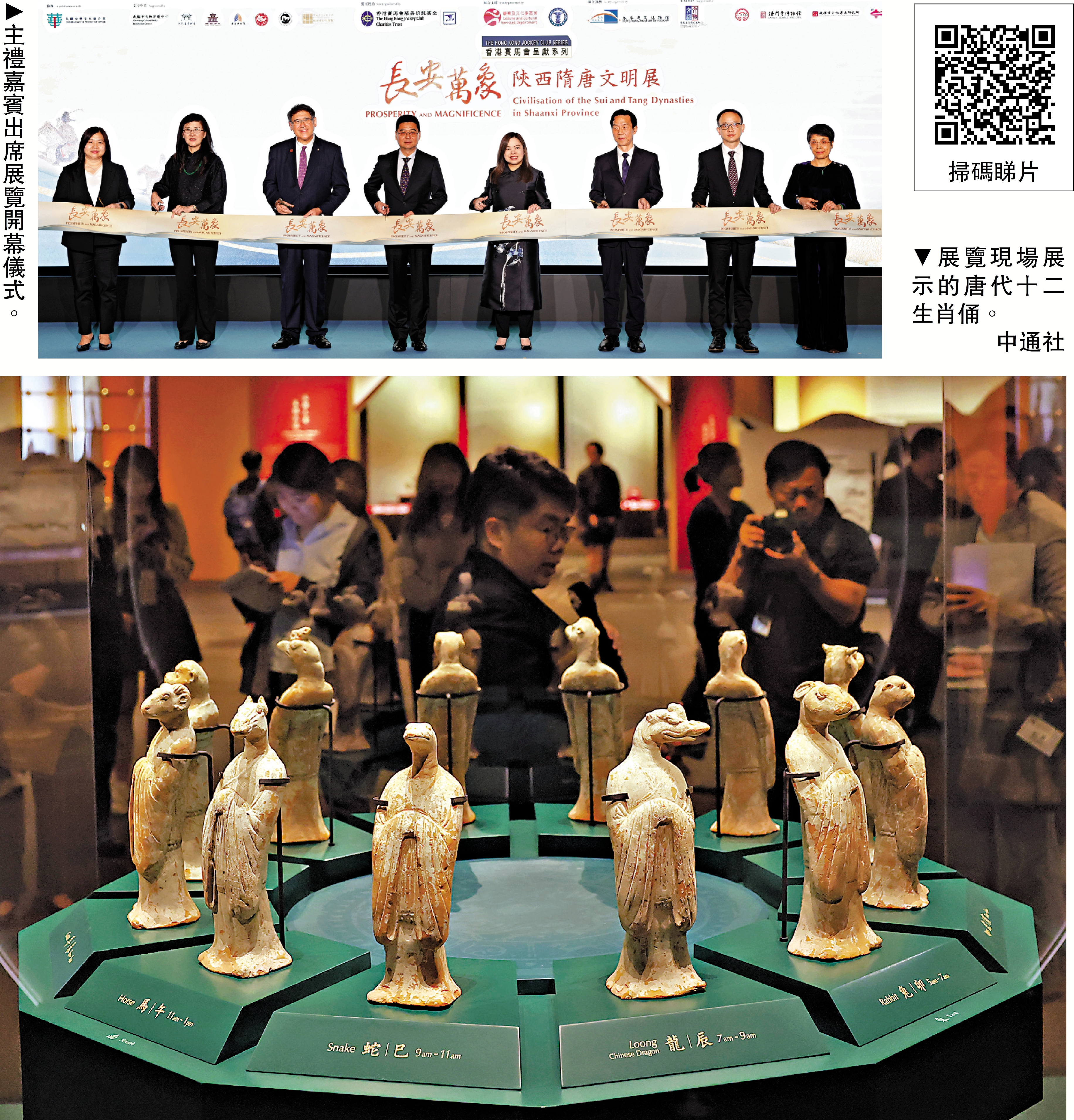 (大公報 記者 劉 毅)唐代都城長安即是現今的陝西省西安,其出土的文物瑰寶,見證唐王朝作為當時國際大都會之盛景。「中國通史系列」第三個展覽「長安萬象─陝西隋唐文明展」今日起在香港歷史博物館舉行,展出來自陝西省11家文博單位的165件(套)文物,其中一半文物為首次在香港亮相,18件為國家一級文物,涵蓋陶俑、雕塑、拓片等,引領觀眾以魏晉南北朝作切入,感受隋唐歷史文化之繁華。展期至8月24日,公眾免費入場。