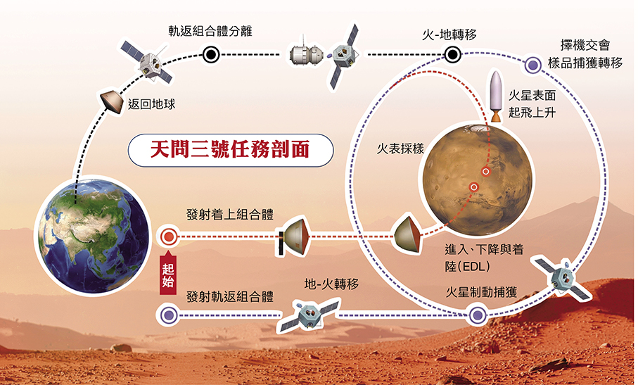 (香港文匯報 記者 劉凝哲、史柳藝 北京、香港連線報道)中國行星探測工程天問三號任務,計劃在2031年前後攜帶火星樣品返回地球。國家航天局24日在「中國航天日」主場活動啟動儀式上發布天問三號五大合作項目遴選結果,香港大學牽頭研製的「火星地物高光譜成像儀」及香港中文大學牽頭研製的「激光外差光譜儀」分別入選。