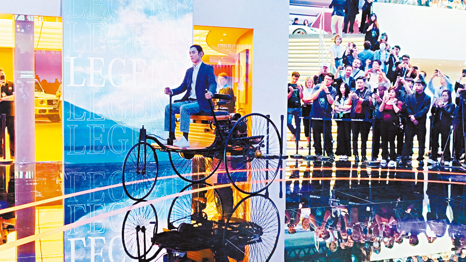 2026年正值汽車誕生140周年,梅賽德斯—奔馳在本屆展會上以品牌經典格柵為設計靈感,打造了極具辨識度的專屬展台,並首次集結了12款跨時代的傳奇座駕與珍貴展品,展開一幅跨越百年的創新畫卷。展品中既有1886年開啟人類出行新紀元的「奔馳一號」,也有1938年問世、被譽為車輪上傳世傑作的540K,及1954年驚艷全球、首創鷗翼門設計的「最美奔馳」,還有率先搭載ABS系統的第五代S級轎車等。此外,中國人心中最經典的「大奔」——第七代S級「虎頭奔」也在現場亮相。