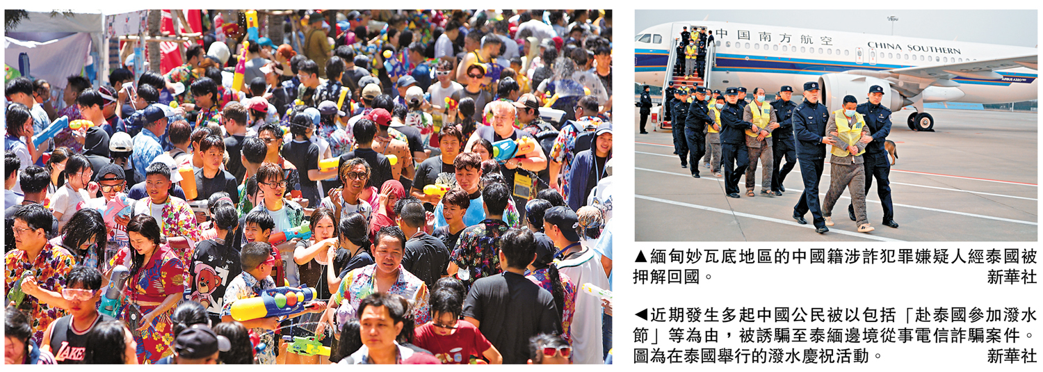 (大公報記者 趙一存)近日,廣東一名19歲女大學生受「朋友」邀請赴泰國參加潑水節,卻在到達泰國後被轉賣至緬甸電詐園區。案件經內地媒體報道後引發廣泛關注。對此,24日,中國駐泰國大使館發布提示指出,近期發生多起中國公民被誘騙至泰緬邊境從事電信詐騙案件,不法分子以「熟人邀約」「旅遊觀光」等名義降低受害者警惕性實施誘騙、控制甚至勒索。駐泰使館提醒來泰中國公民務必強化風險意識,加強安全防範,遠離非法活動,確保人身和財產安全。