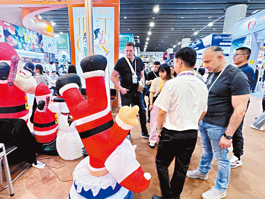 (香港文匯報 記者 李紫妍、帥誠 廣州報道)第139屆廣交會第二期正在廣州火熱舉行。走進「節日用品」和「禮品及贈品」展區,聖誕老人、夢幻聖誕樹與琳琅滿目的裝飾品堆砌出濃厚的節日氛圍。