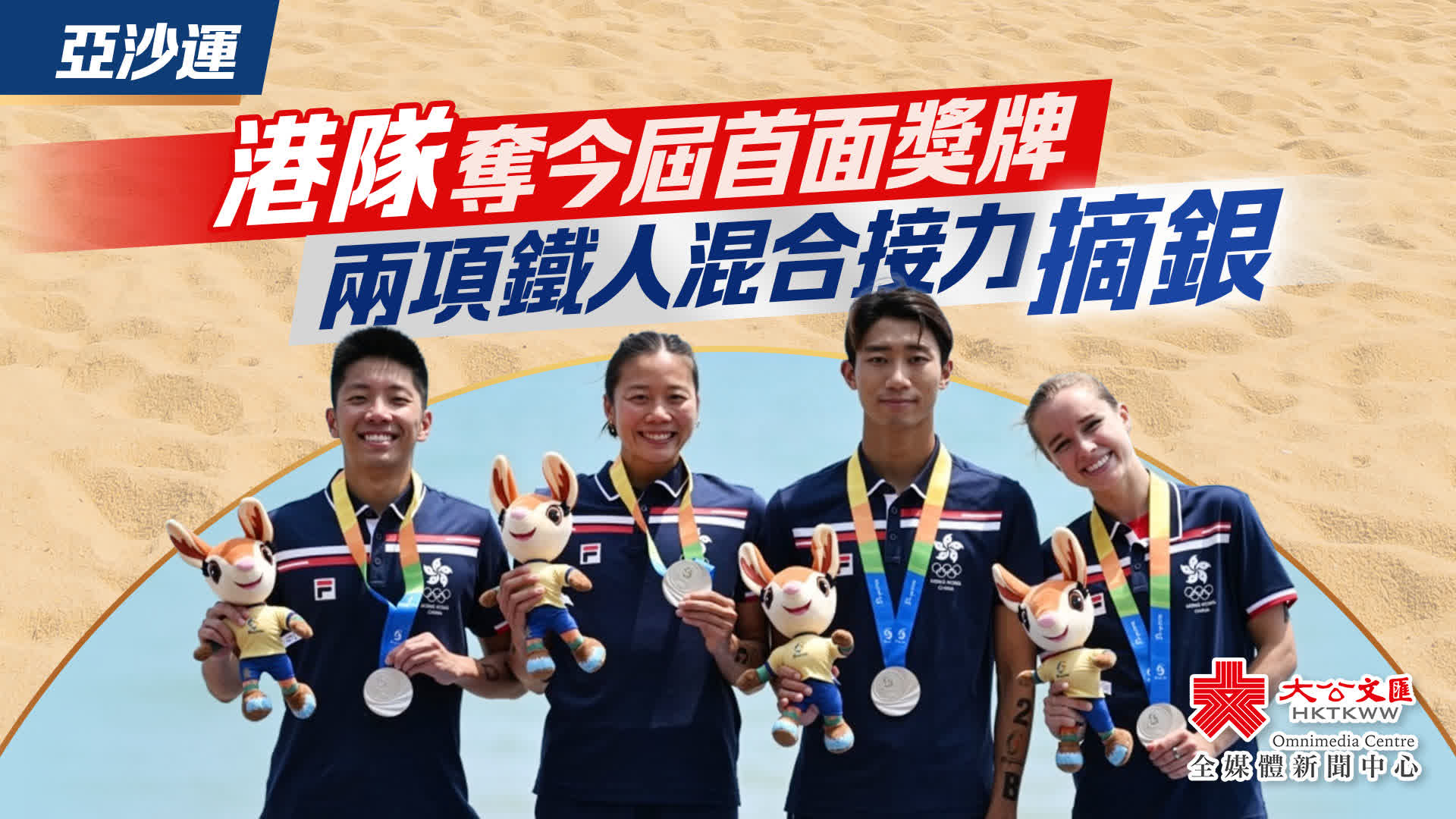 大公文匯全媒體報道,亞洲沙灘運動會今日(25日)續在海南島三亞上演,港隊彭詩雅、蔡欣妍、黃子圖和余承謙在兩項鐵人混合接力項目摘銀,是中國香港代表團今屆亞沙運的首面獎牌。