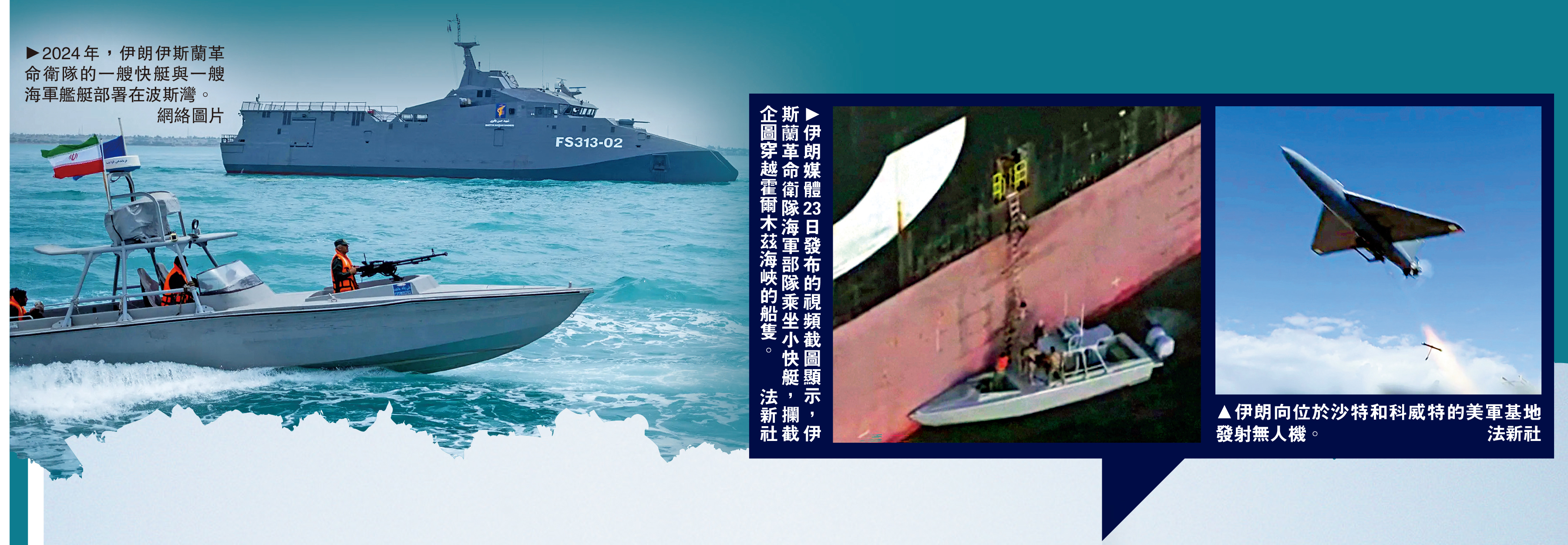 儘管美國總統特朗普20日聲稱,伊朗「快速攻擊艦艇」的威脅微乎其微,但伊朗很快就在23日扣押了兩艘未獲授權、企圖通過霍爾木茲海峽的船隻。據公布的視頻畫面顯示,實施扣押任務的正是伊朗伊斯蘭革命衛隊的小型快艇。伊朗司法總監埃傑伊23日表示,革命衛隊的「蜂群」艦隊正嚴陣以待,隨時準備通過「飽和式」攻擊摧毀美方防禦。