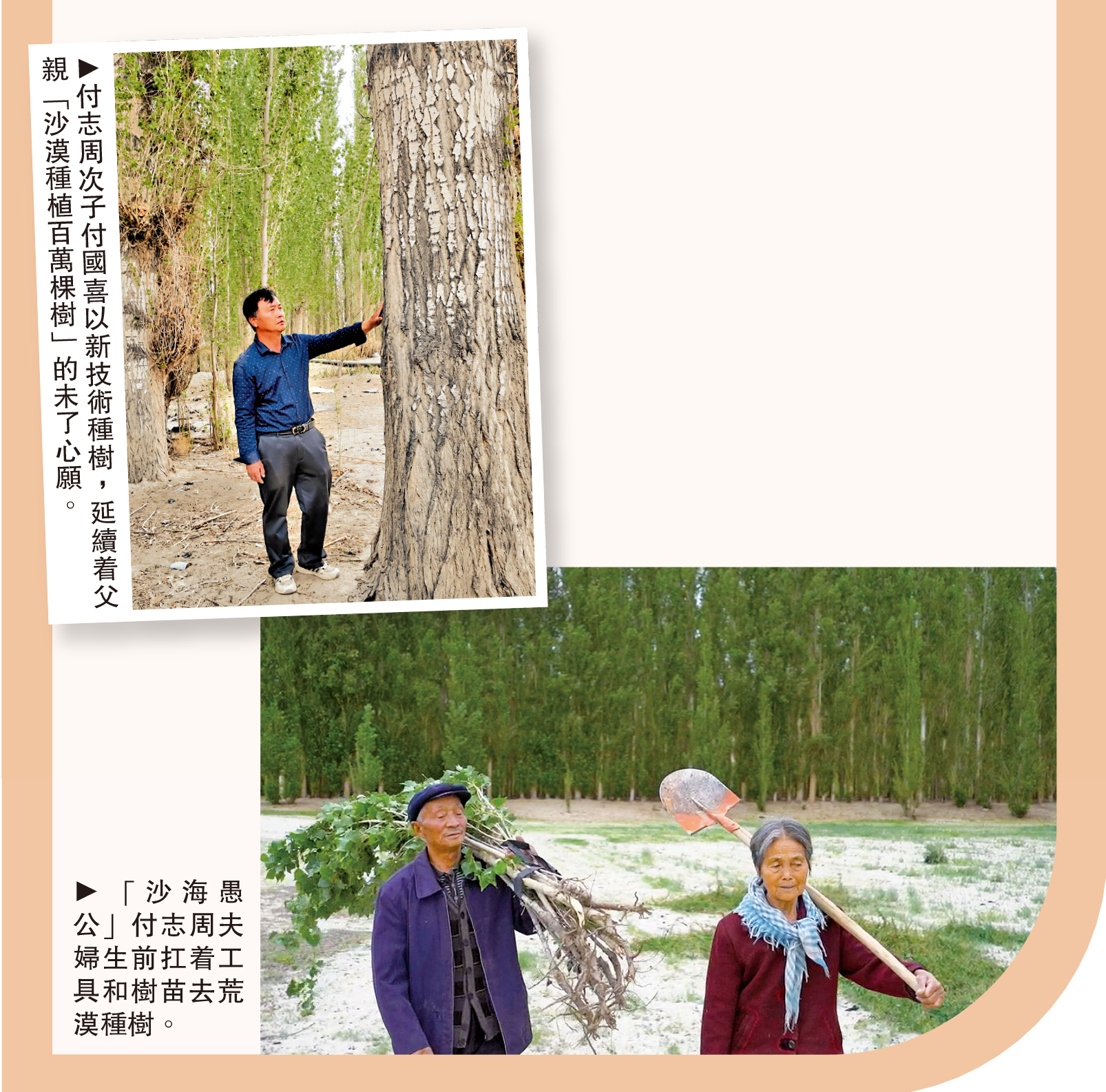 2018年,他走進人民大會堂,戴上全國「三北」防護林建設40周年「綠色長城獎章」,成為家喻戶曉的「沙海愚公」。2024年初,付志周離世,留下未完成「百萬棵樹」心願。如今,付志周二兒子付國喜以新技術種樹,距離百萬棵目標越來越近。