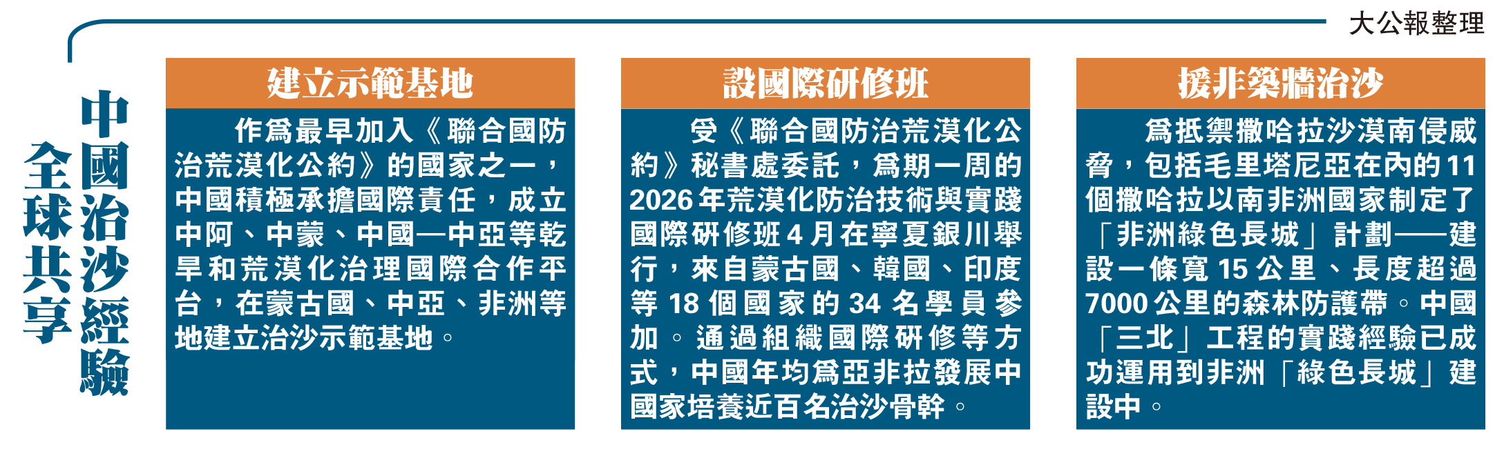 (大公報記者 應江洪)長達3046公里的中國「綠色長城」,創造世界治沙史上奇跡,膺「2025全球十大工程成就」!最新一期英國《自然》發表社論指出,中國「三北」工程打造世界最長環沙漠綠色屏障,其建設經驗值得借鑒,穩定投入、持續維護及在實踐中不斷調整實施路徑等做法,對全球防治荒漠化具有啟示意義。