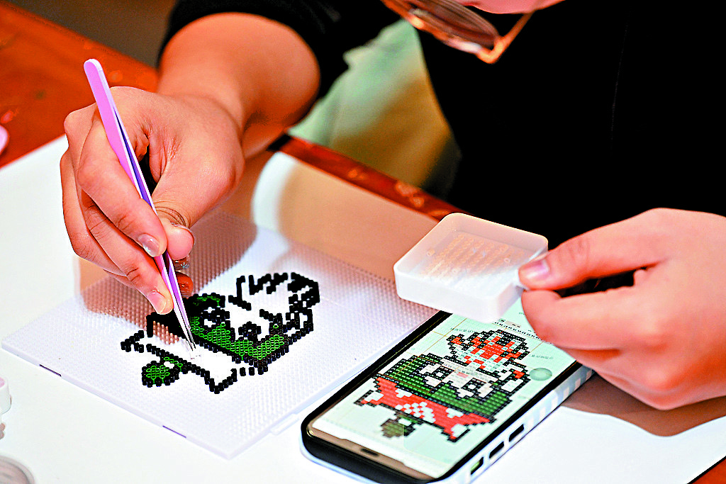 「拼豆比十字繡簡單,花費也不高,主要是好玩又解壓。」北京市一家拼豆店工作人員表示,店裏顧客大多數是學生和年輕人,周末高峰期20多個座位全坐滿,甚至需提前預約。上班族蔡女士說,平時工作壓力大,拼豆能讓人靜下心、減輕焦慮,拼起來容易上癮。有時拼到深夜都不覺得累。