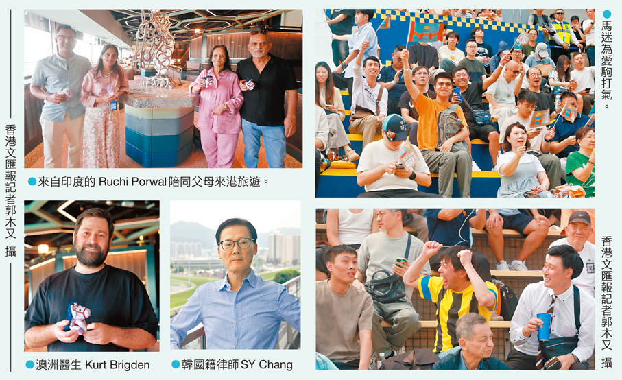 香港文匯報記者於沙田馬場所見,場內氣氛熾熱,各處均可見旅客的身影。來自澳洲的醫生Kurt Brigden昨日甫抵港便趕往馬場,他大讚現場氣氛媲美甚至超越歐洲著名馬場,且更具國際特色,「沙田馬場設施完善、交通便利。」