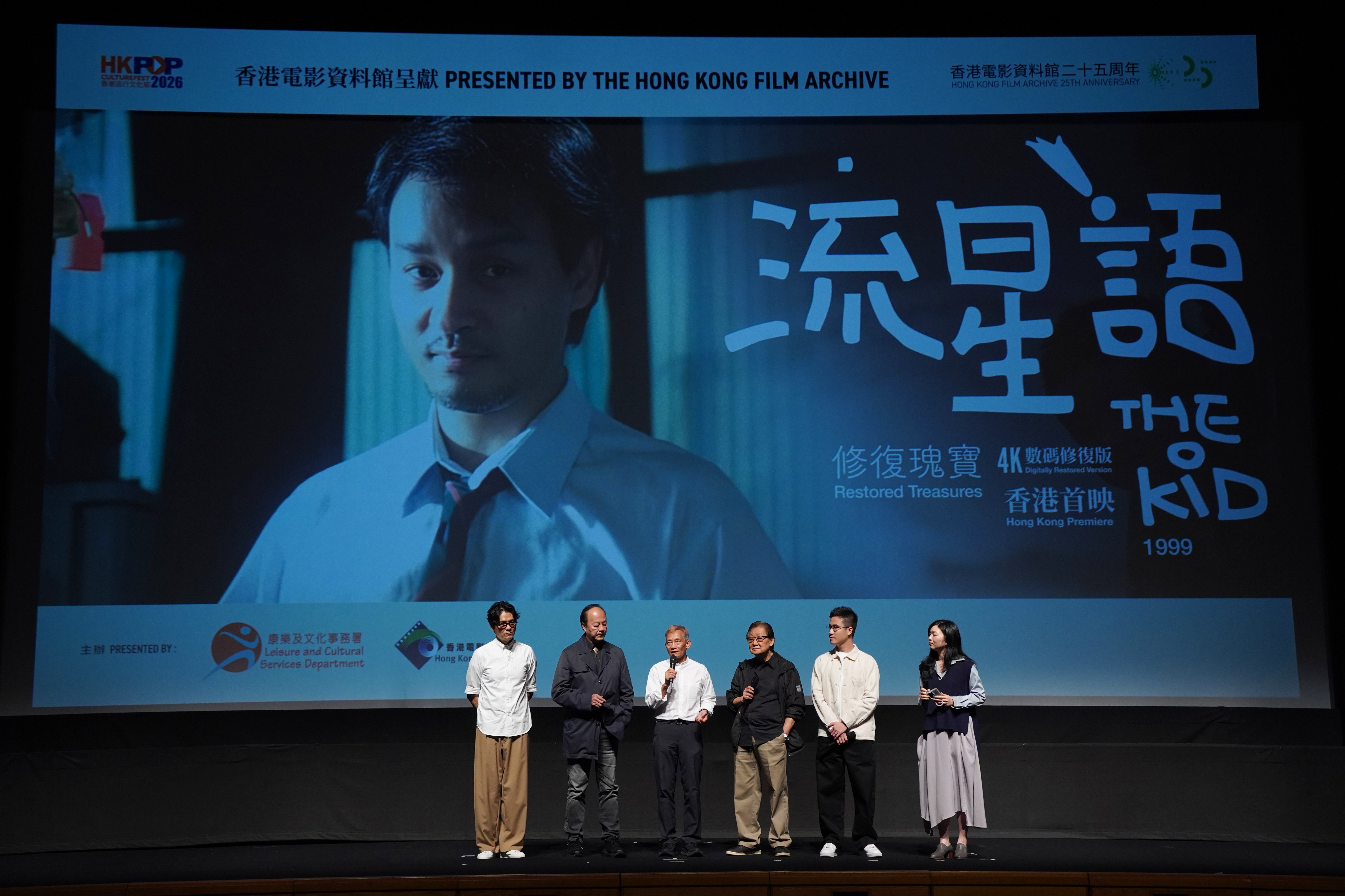 (大公文匯全媒體特約記者 陳惠芳 報道)今年是張國榮(Leslie)誕辰70周年,康文署轄下的香港電影資料館特別推出「修復瑰寶——《流星語》(1999)4K數碼修復版」香港首映,作為資料館25周年誌慶及「香港流行文化節2026」的重點節目。放映於昨(26日)晚在香港文化中心舉行,導演張之亮、另一「創意聯盟」發起人張同祖,以及演員狄龍、林家棟、當年飾演「明仔」的葉靖嵐一同出席,並在映前分享難忘回憶。