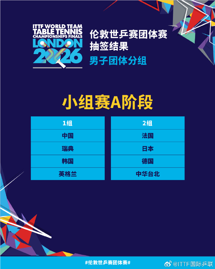 根據此前公布的簽表,男隊與瑞典、韓國、英格蘭隊同組,女隊與韓國、中華台北、羅馬尼亞隊同組。