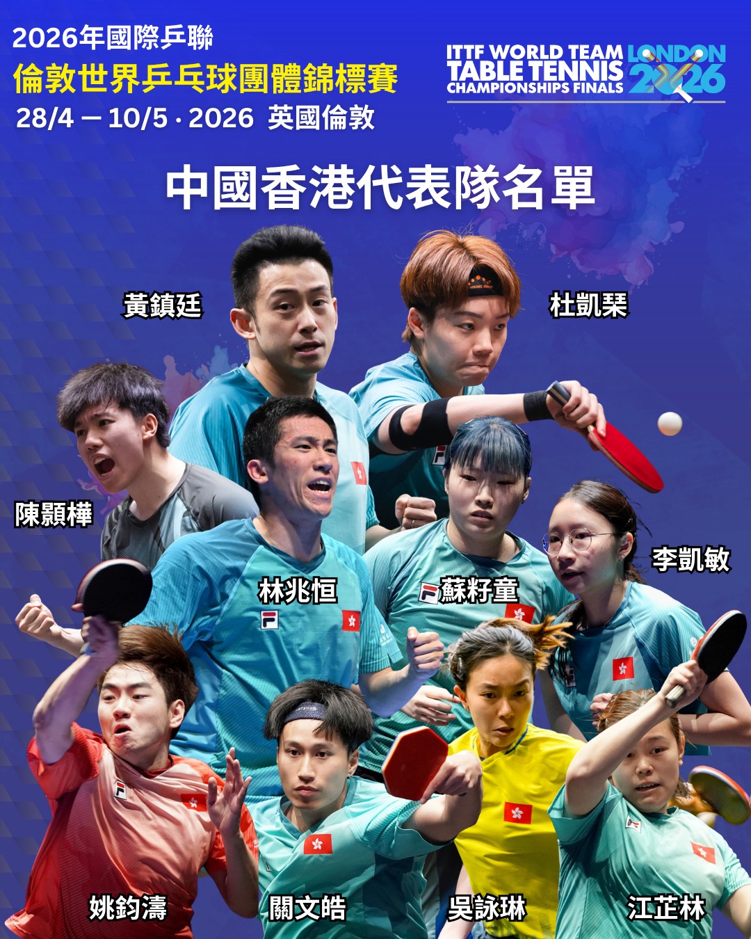 關鍵詞:倫敦世乒賽黃鎮廷杜凱琹王楚欽孫穎莎