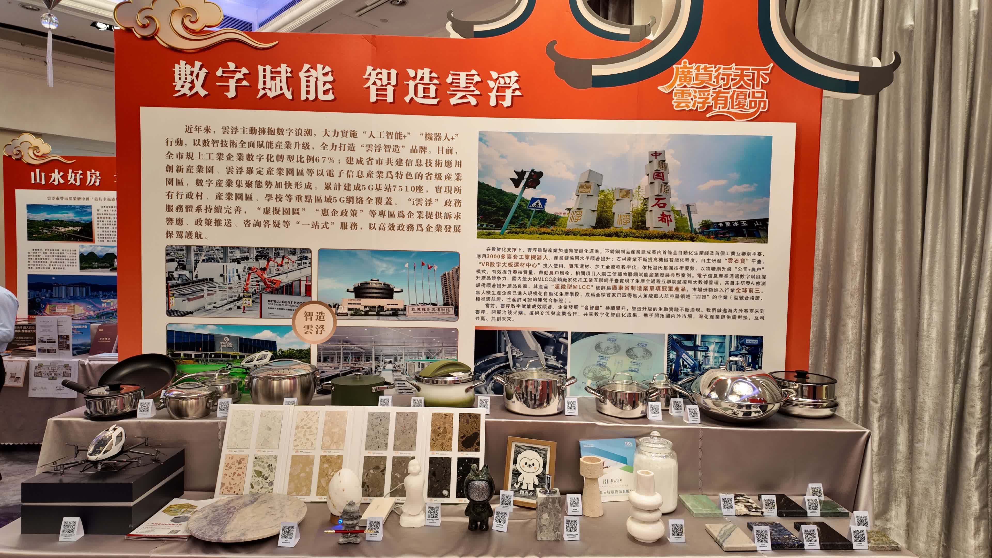 活動期間還舉辦「廣貨行天下 雲浮有優品」主題展,集中展示雲浮本土特色產品,涵蓋農特優食品、石材工藝、不鏽鋼餐廚具、美妝洗護、雲浮好房等產品,全面展現雲浮生態農業、匠心工藝與先進製造的發展成果。