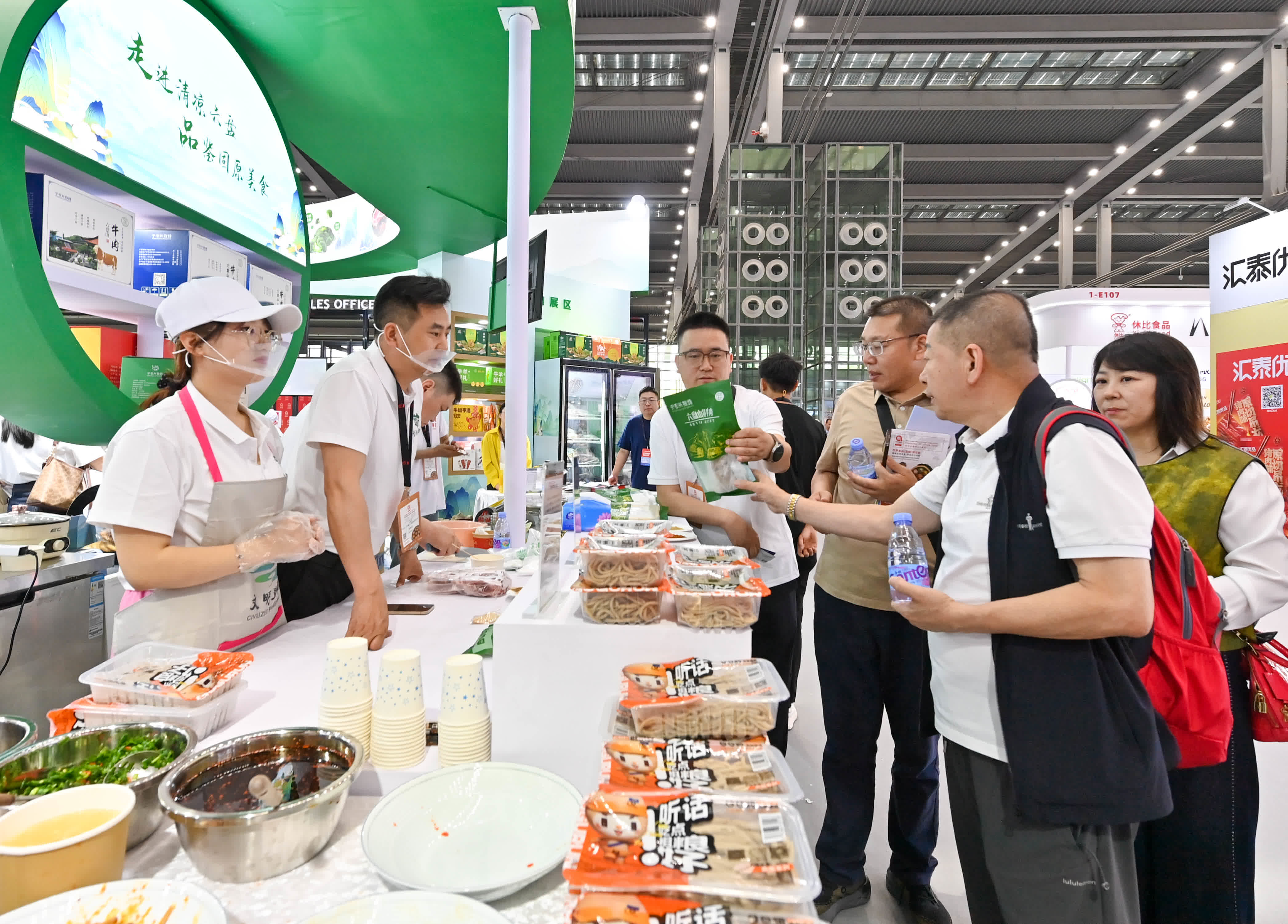 大會期間還穿插了《六盤山河圖》《喊一聲彭陽》《紅梅杏》等具有固原特色的文藝節目,為10家固原特色農產品外銷窗口企業代表授牌,並通過兩輪現場抽獎互動送出六盤山牛肉禮盒,現場氣氛熱烈。活動最後,與會嘉賓移步固原展區,現場品鑒固原優質農特產品,近距離感受「六盤山下富春山居圖」的獨特魅力。